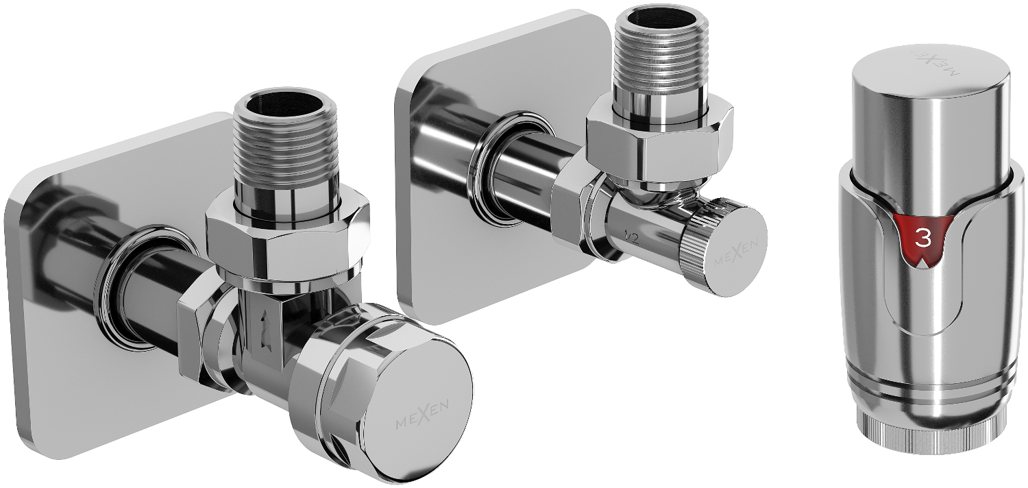 Komplektā ir pieplūdes un aizgriežamais radiatora vārsts