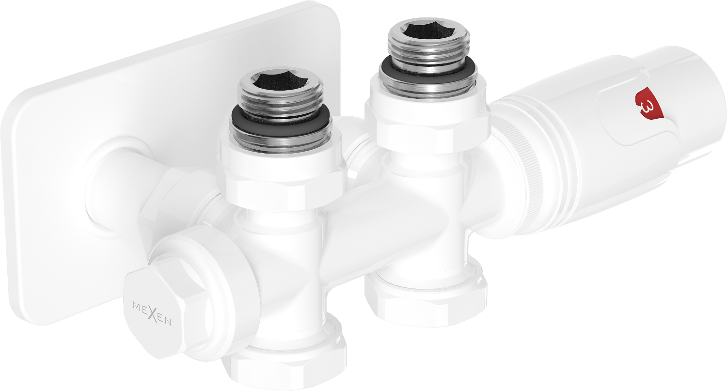 Universāls barošanas un izslēgšanas vārsts leņķa un taisnajiem savienojumiem, neatkarīgi no tā, vai savienojums ir sienā vai grīdā