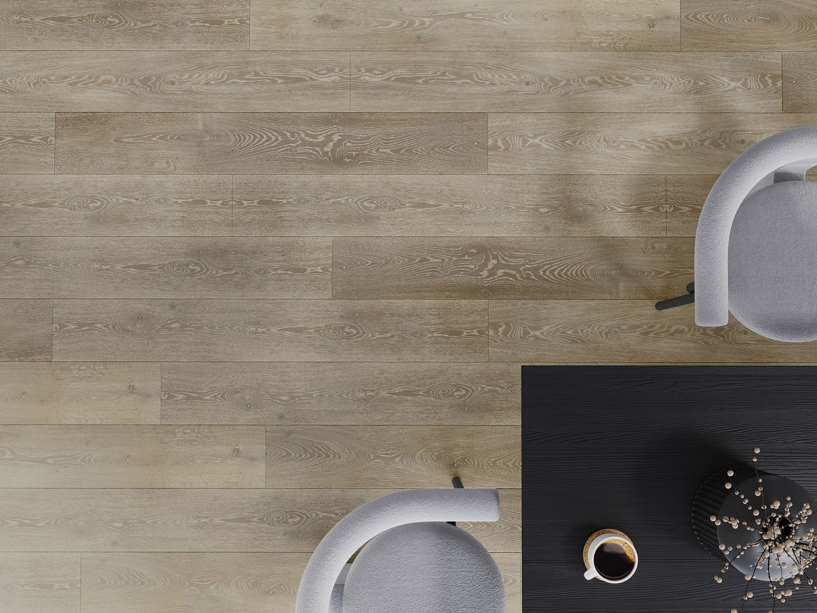 Paneļiem ir 4-pusējs fuga - katra mala ir frēzēta tā, lai pēc ieklāšanas izveidotos savienojums burta "V" formā. Šāds dizains padara grīdu izteiksmīgāku, piešķirot tai dziļumu un estētisku raksturu. Šis efekts ir īpaši novērtēts mūsdienu interjeros, kur detaļas izceļ telpas unikālo izskatu.