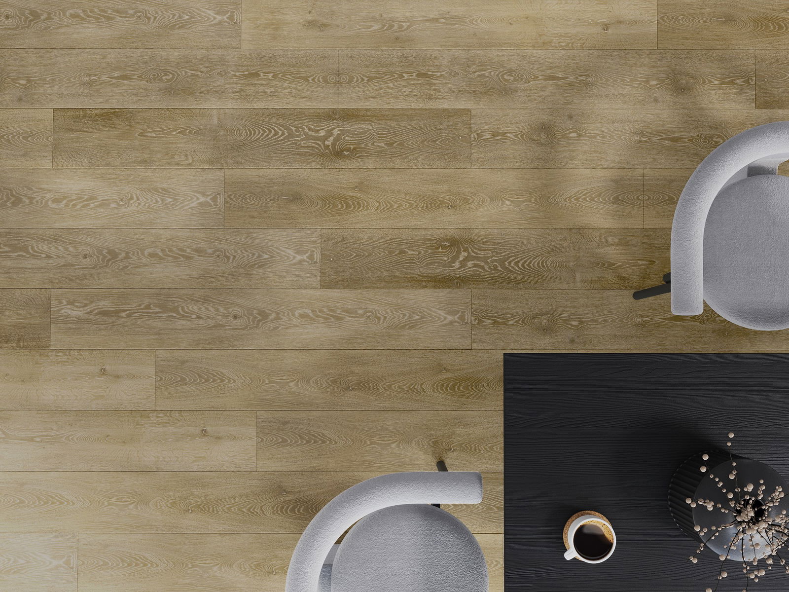Paneļiem ir 4-pusējs fuga - katra mala ir frēzēta tā, lai pēc ieklāšanas izveidotos savienojums burta "V" formā. Šāds dizains padara grīdu izteiksmīgāku, piešķirot tai dziļumu un estētisku raksturu. Šis efekts ir īpaši novērtēts mūsdienu interjeros, kur detaļas izceļ telpas unikālo izskatu.