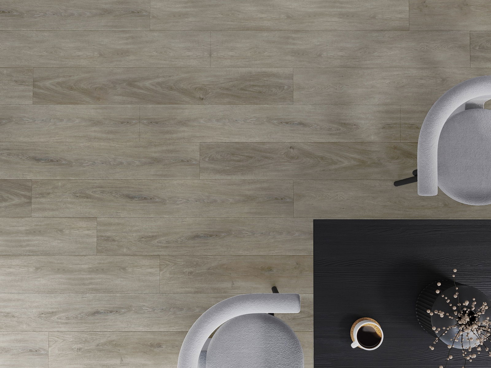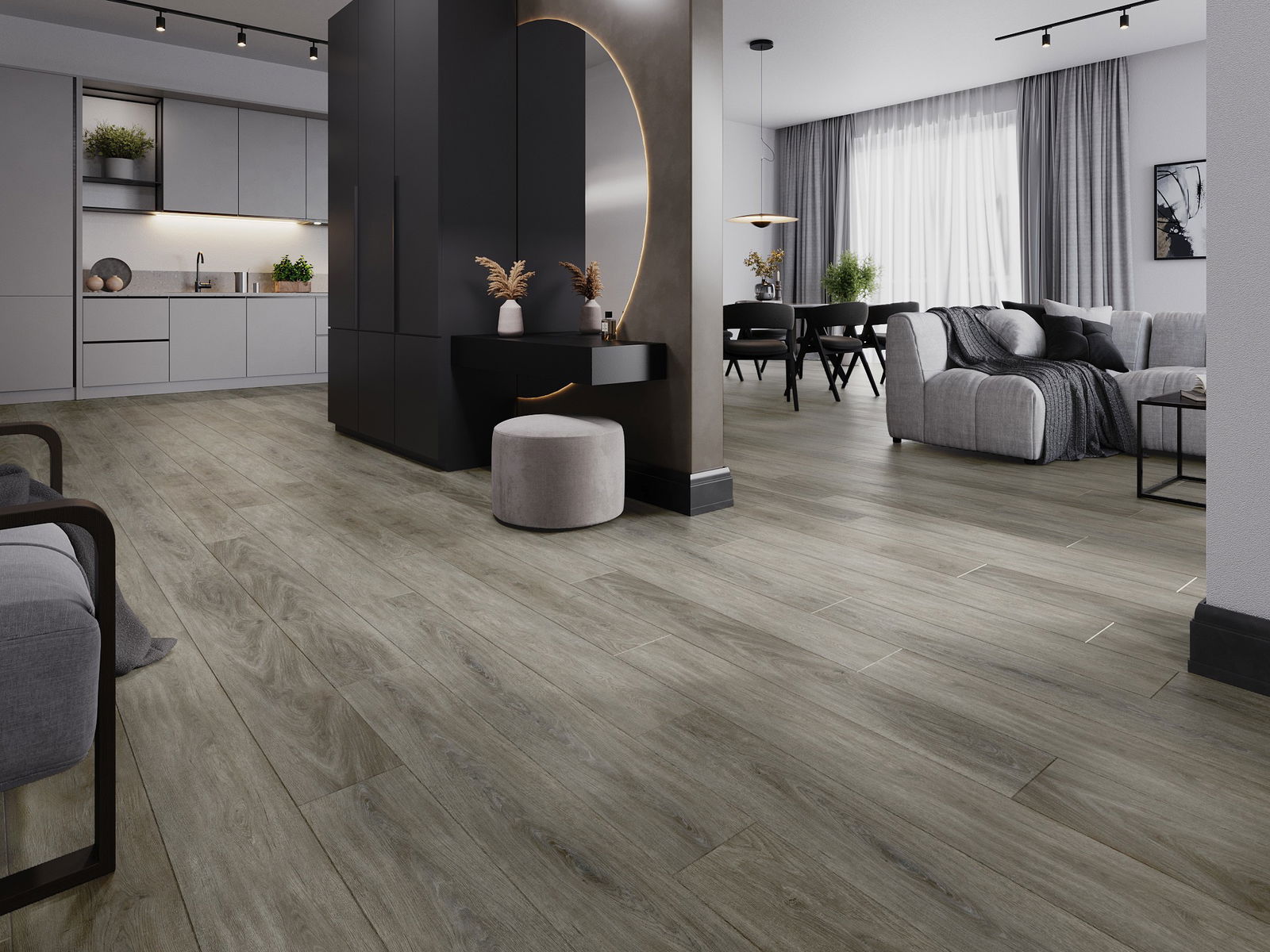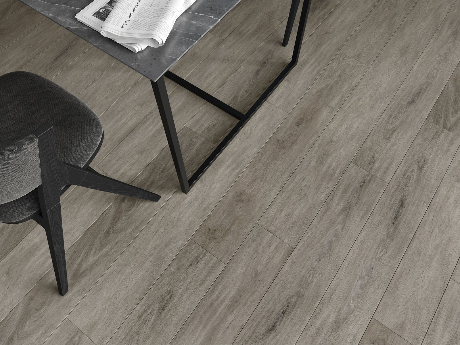 Paneļiem ir 4-pusējs fuga - katra mala ir frēzēta tā, lai pēc ieklāšanas izveidotos savienojums burta "V" formā. Šāds dizains padara grīdu izteiksmīgāku, piešķirot tai dziļumu un estētisku raksturu. Šis efekts ir īpaši novērtēts mūsdienu interjeros, kur detaļas izceļ telpas unikālo izskatu.
