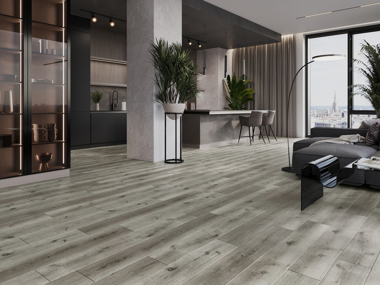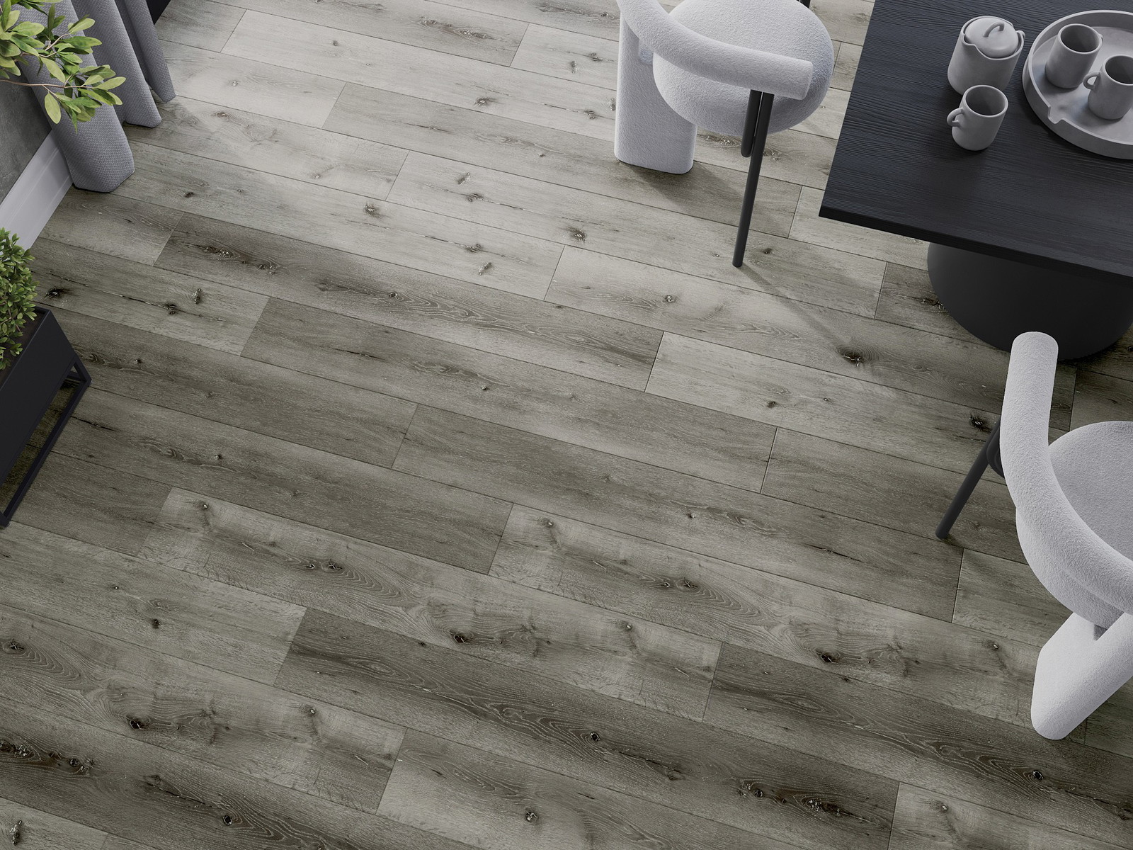 Paneļiem ir 4 pusēm fuga - katra mala ir iefrēzēta tādā veidā, lai pēc uzstādīšanas veidotos V veida savienojums. Šāds dizains padara grīdu izteiksmīgāku, piešķirot tai dziļumu un estētisku raksturu. Šo efektu īpaši novērtē mūsdienīgās iekārtās, kur detaļas izceļ telpas unikālo izskatu.