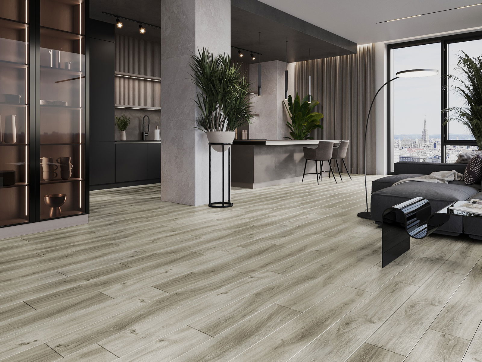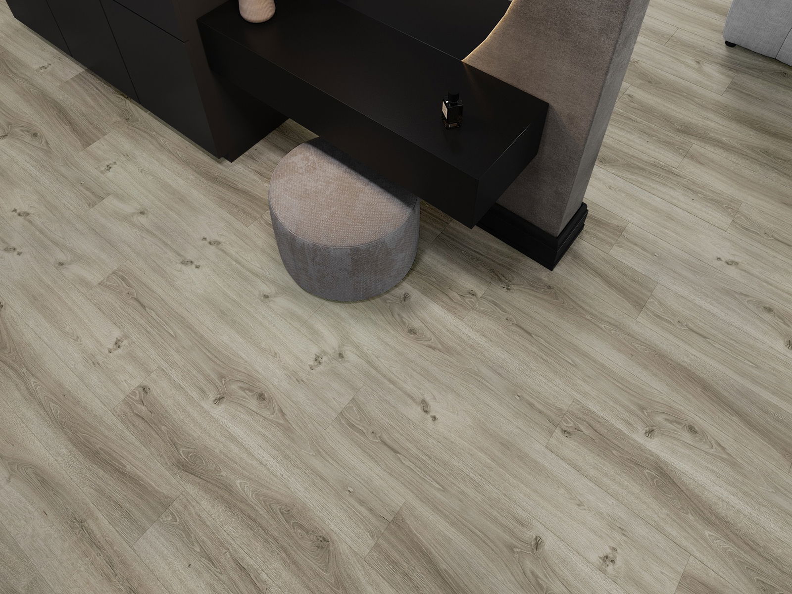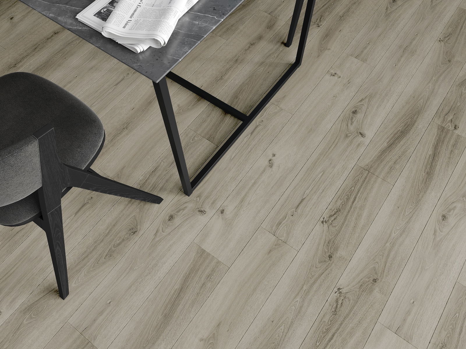 Paneļiem ir 4-pusējs fuga - katra mala ir frēzēta tā, lai pēc ieklāšanas izveidotos savienojums burta "V" formā. Šāds dizains padara grīdu izteiksmīgāku, piešķirot tai dziļumu un estētisku raksturu. Šis efekts ir īpaši novērtēts mūsdienu interjeros, kur detaļas izceļ telpas unikālo izskatu.