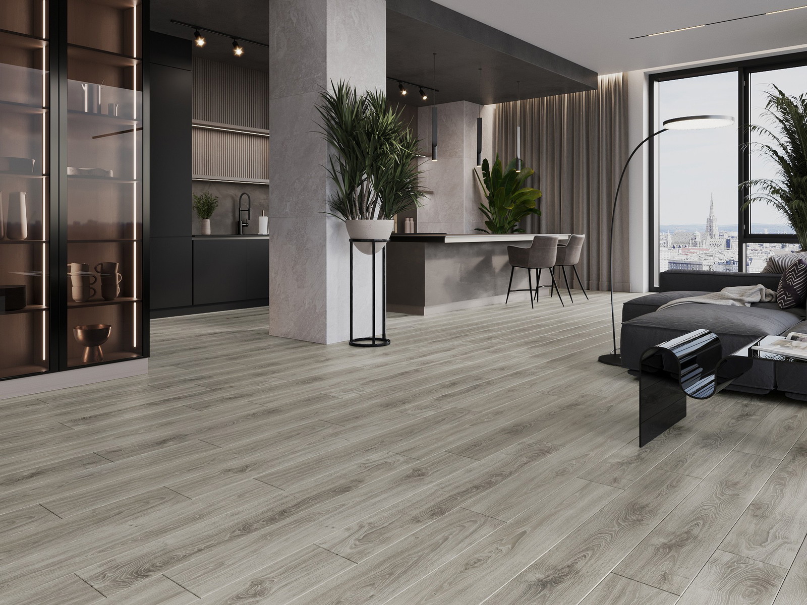 Paneļiem ir 4 pusēm fuga - katra mala ir iefrēzēta tādā veidā, lai pēc uzstādīšanas veidotos V veida savienojums. Šāds dizains padara grīdu izteiksmīgāku, piešķirot tai dziļumu un estētisku raksturu. Šo efektu īpaši novērtē mūsdienīgās iekārtās, kur detaļas izceļ telpas unikālo izskatu.