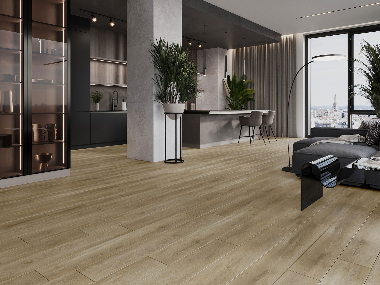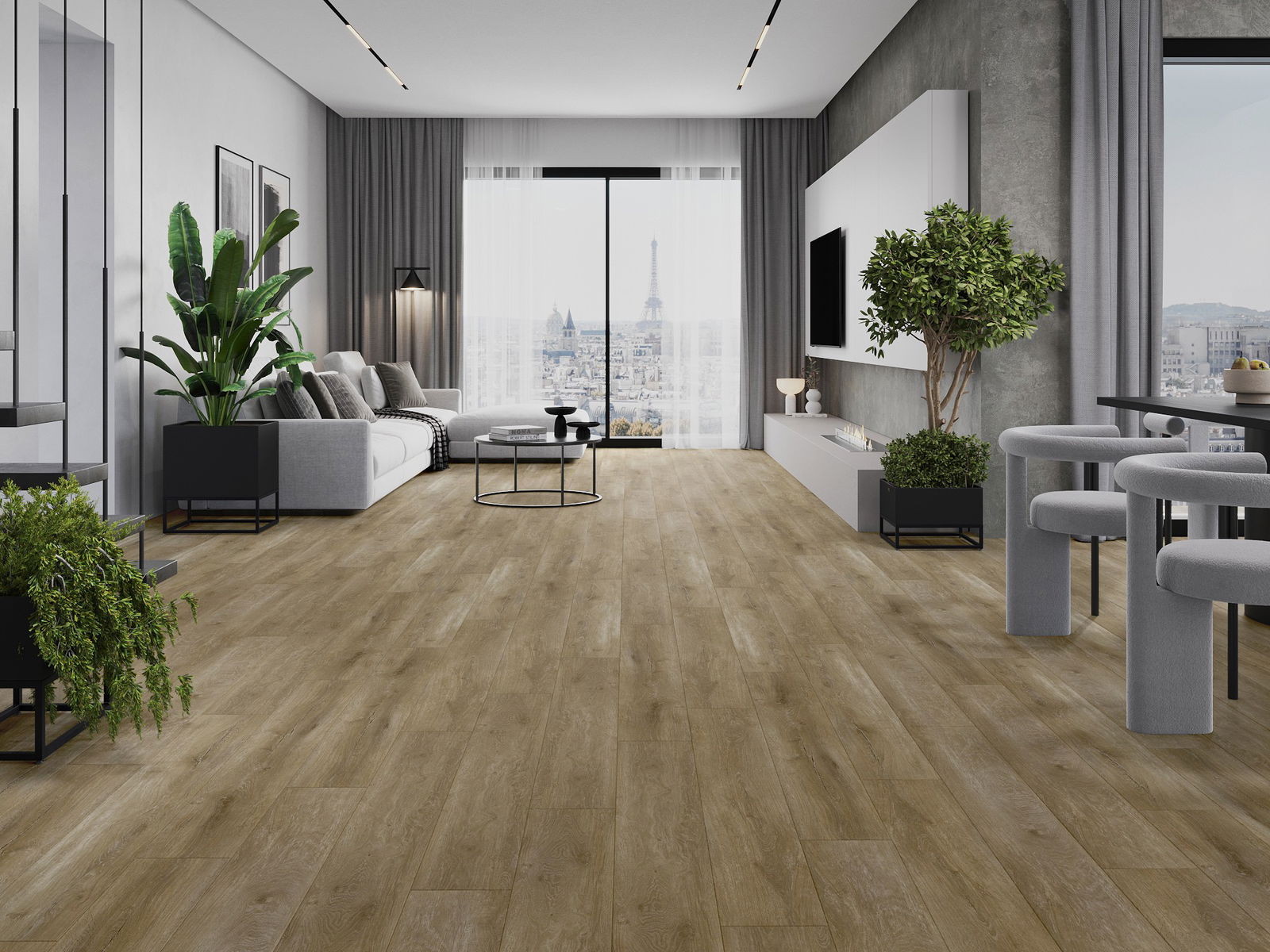 Investējiet vinila paneļos, kas apvieno modernitāti ar funkcionalitāti. Šie paneļi ar izmēriem 1240 x 182 mm un biezumu 6,5 mm, ar nolietojuma slāni 0,55 mm, nodrošina minimālistisku un elegantā izskatu, pateicoties ozolkoka dabīgajai struktūrai. To super ūdensizturība (100%) un izturība pret mehāniskiem bojājumiem nodrošina ilgstošu izturību. Pateicoties Uniclick 2G montāžas sistēmai un integrētajai IXPE pamatnei, tie ātri un viegli uzklājas. Ideāli piemēroti telpām ar grīdas apsildi.