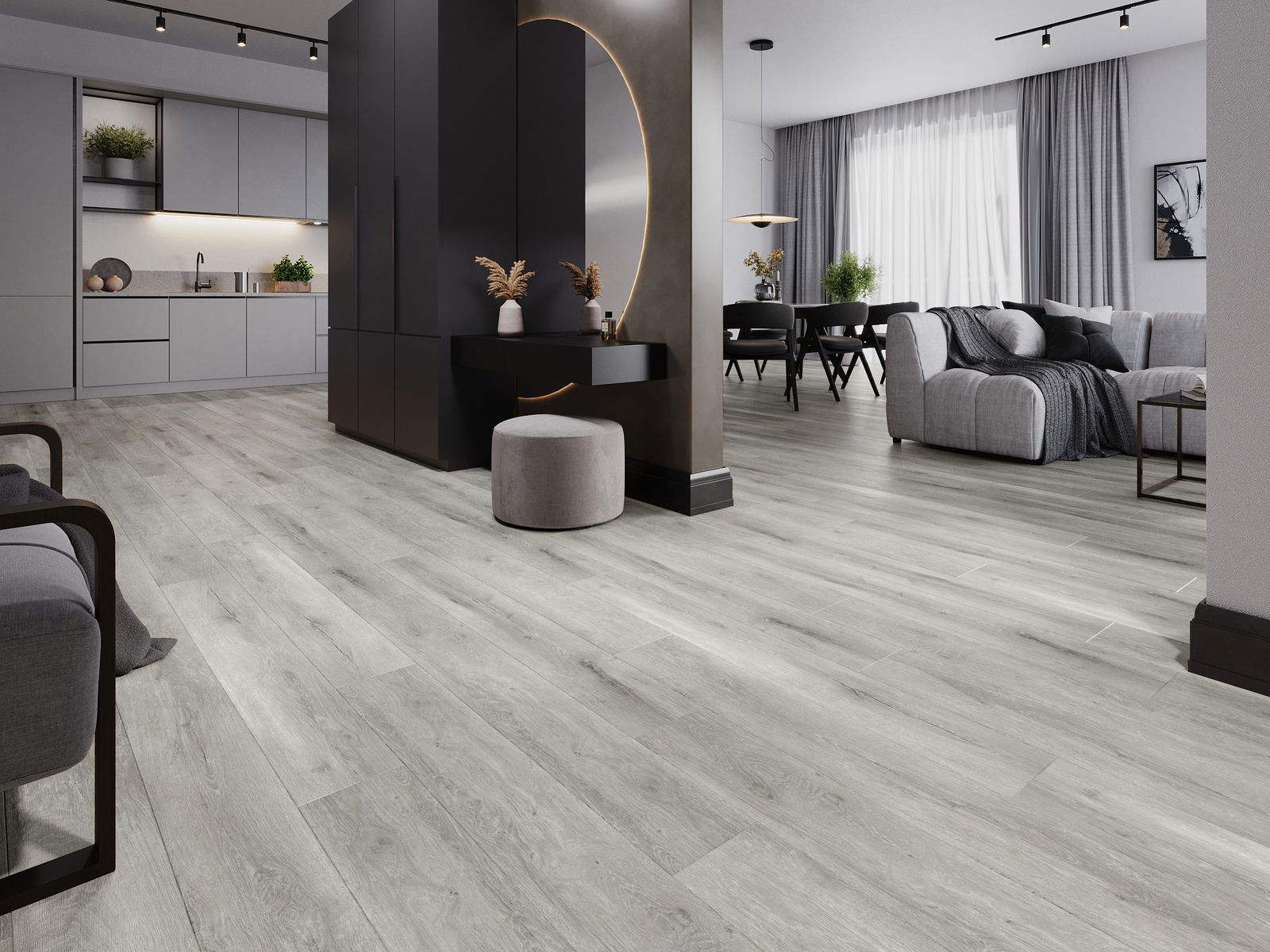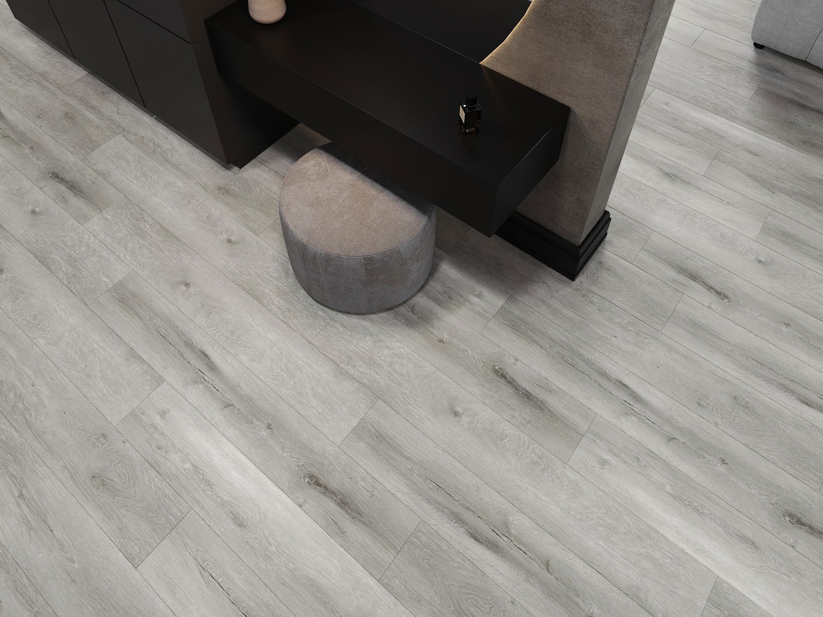 Paneļiem ir 4-pusējs fuga - katra mala ir frēzēta tā, lai pēc ieklāšanas izveidotos savienojums burta "V" formā. Šāds dizains padara grīdu izteiksmīgāku, piešķirot tai dziļumu un estētisku raksturu. Šis efekts ir īpaši novērtēts mūsdienu interjeros, kur detaļas izceļ telpas unikālo izskatu.
