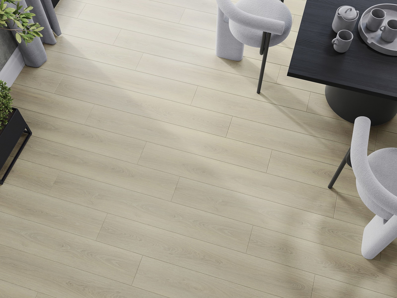 Paneļiem ir 4 pusēm fuga - katra mala ir iefrēzēta tādā veidā, lai pēc uzstādīšanas veidotos V veida savienojums. Šāds dizains padara grīdu izteiksmīgāku, piešķirot tai dziļumu un estētisku raksturu. Šo efektu īpaši novērtē mūsdienīgās iekārtās, kur detaļas izceļ telpas unikālo izskatu.