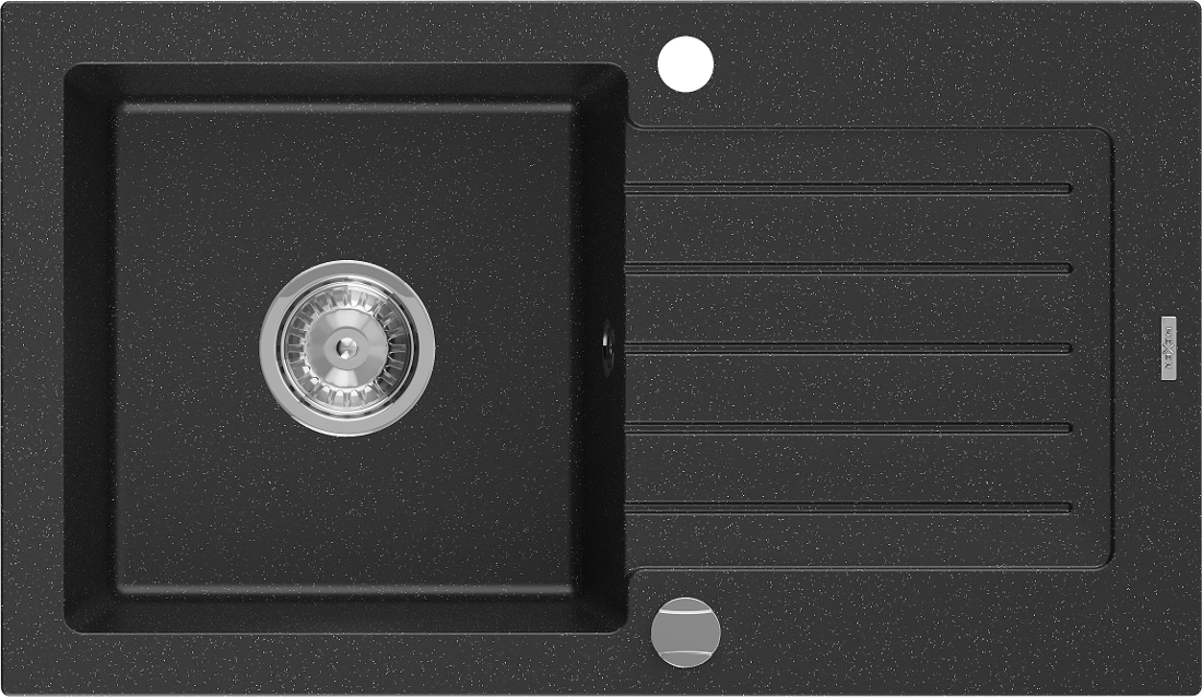 Mexen Pablo granitizlietne ar vienu nodalījumu un noteku 752 x 436 mm, melna/sudraba metāliska, hromēta sifona
