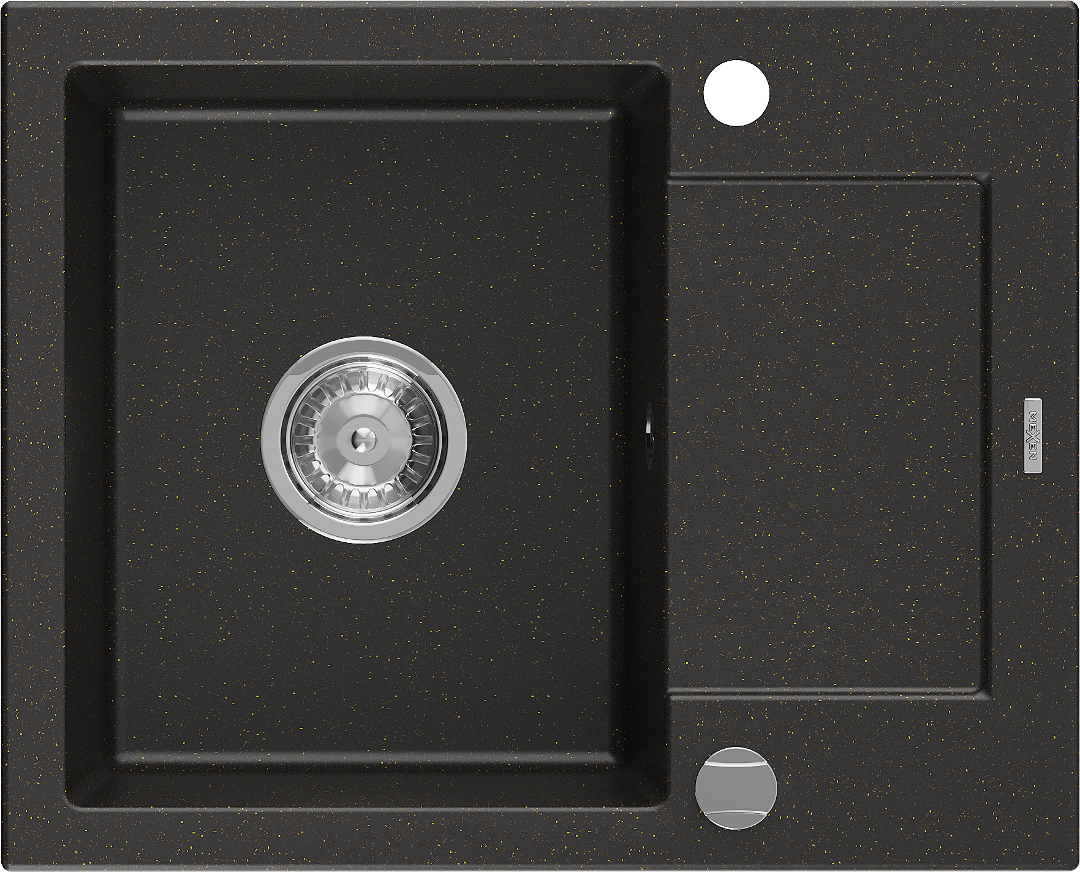 Mexen Enzo 1-kameras granīta izlietne ar noteces nodalījumu 576 x 465 mm, melns/zelta metāliks, hroma sifons - 6506571005-75