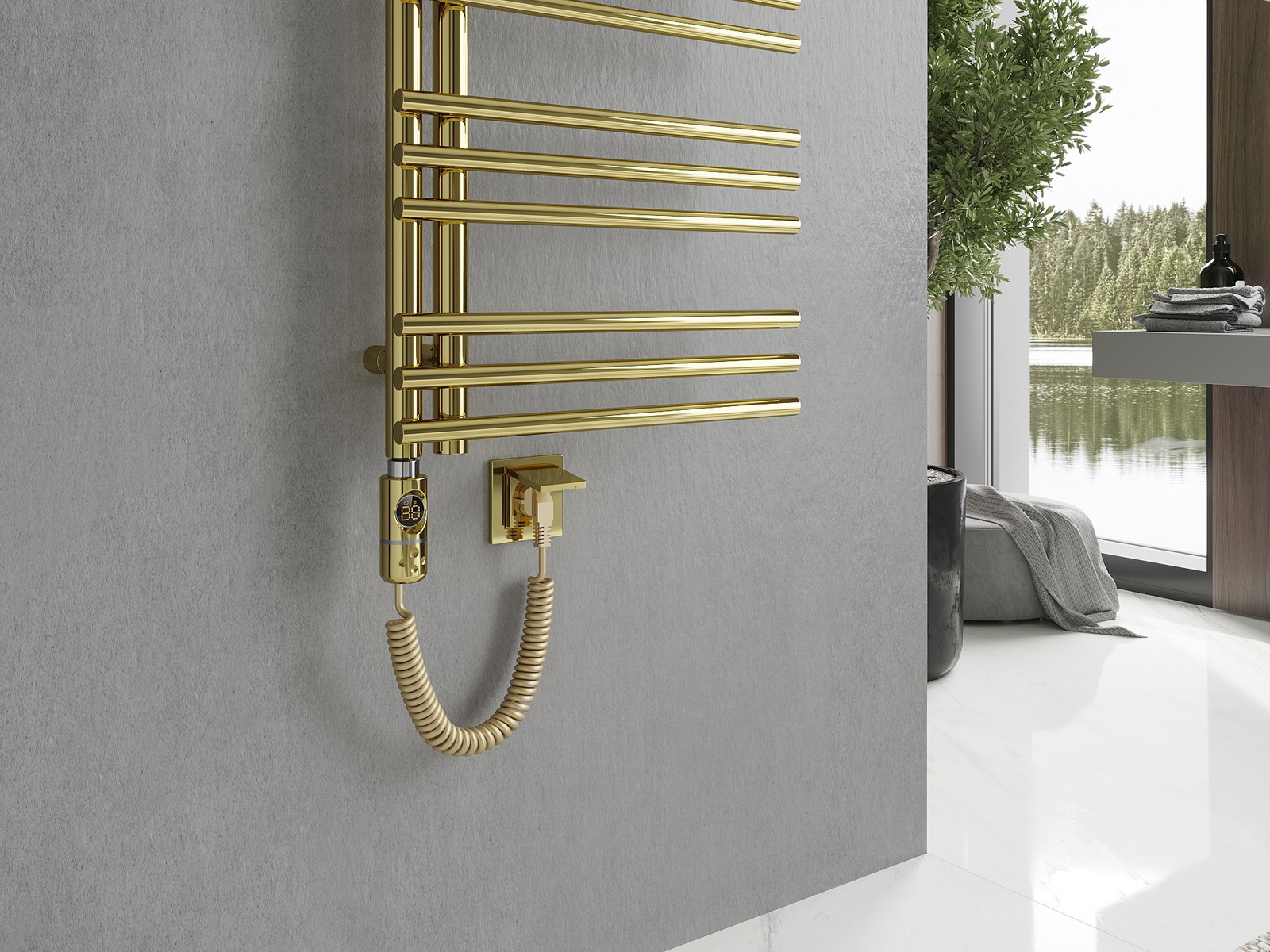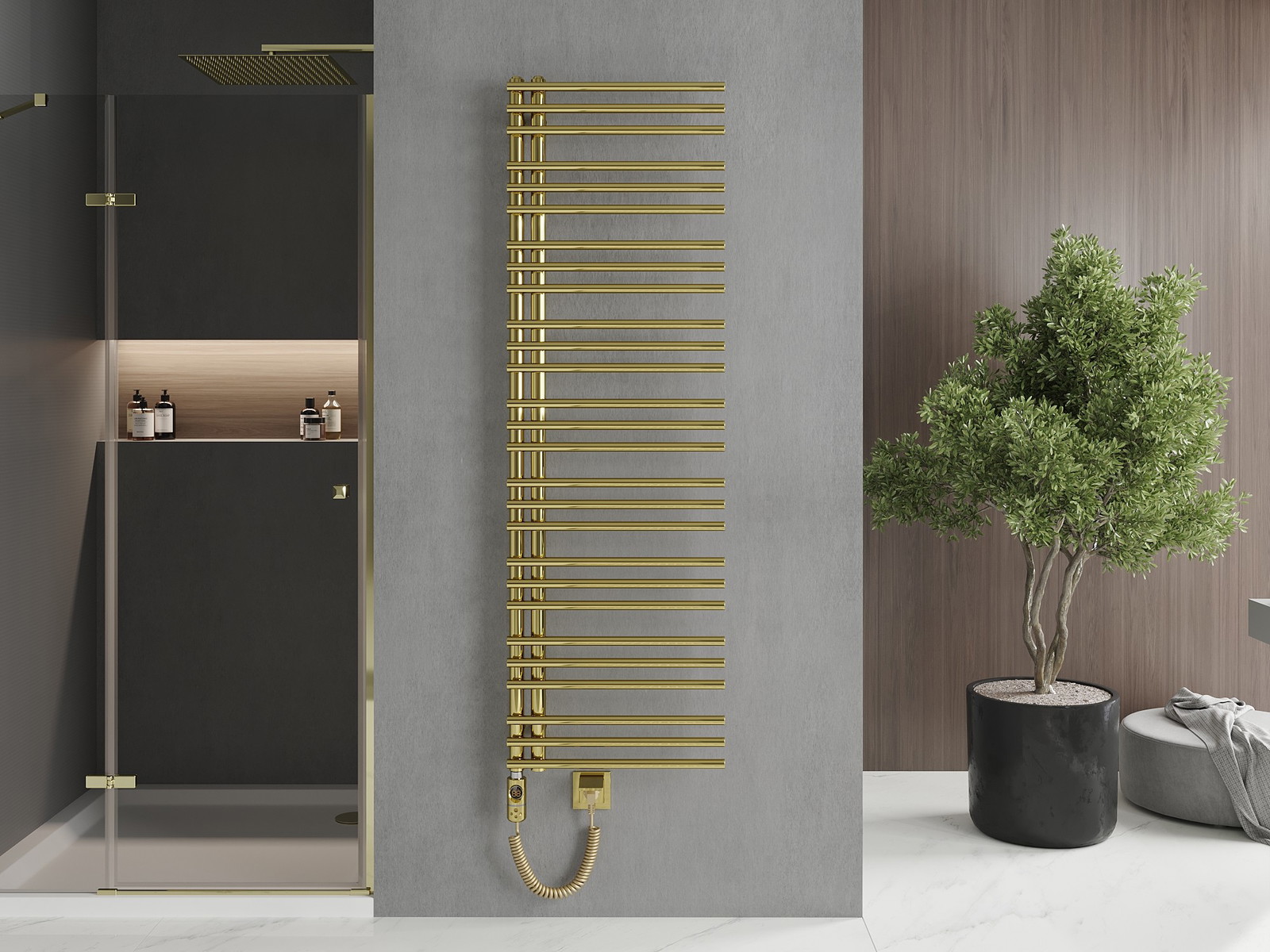 Elektriskais radiators Mexen Neptun ir moderns risinājums ar augstu efektivitāti. Izceļas ar elegantu zeltainu apdari un tērauda konstrukciju. Pateicoties izmēriem 1600 x 500 mm un jaudai 600 W, tas ir ideāli piemērots dažādām telpām. Radiators ir aprīkots ar skārienjutīgu LED vadību, aizsardzību pret darbību bez šķidruma un iebūvētu termostatu. Tādi režīmi kā žāvēšanas funkcija vai vecāku bloķēšana palielina lietotāja komfortu. Komplektā iekļauts montāžas komplekts, kas atvieglo uzstādīšanu.