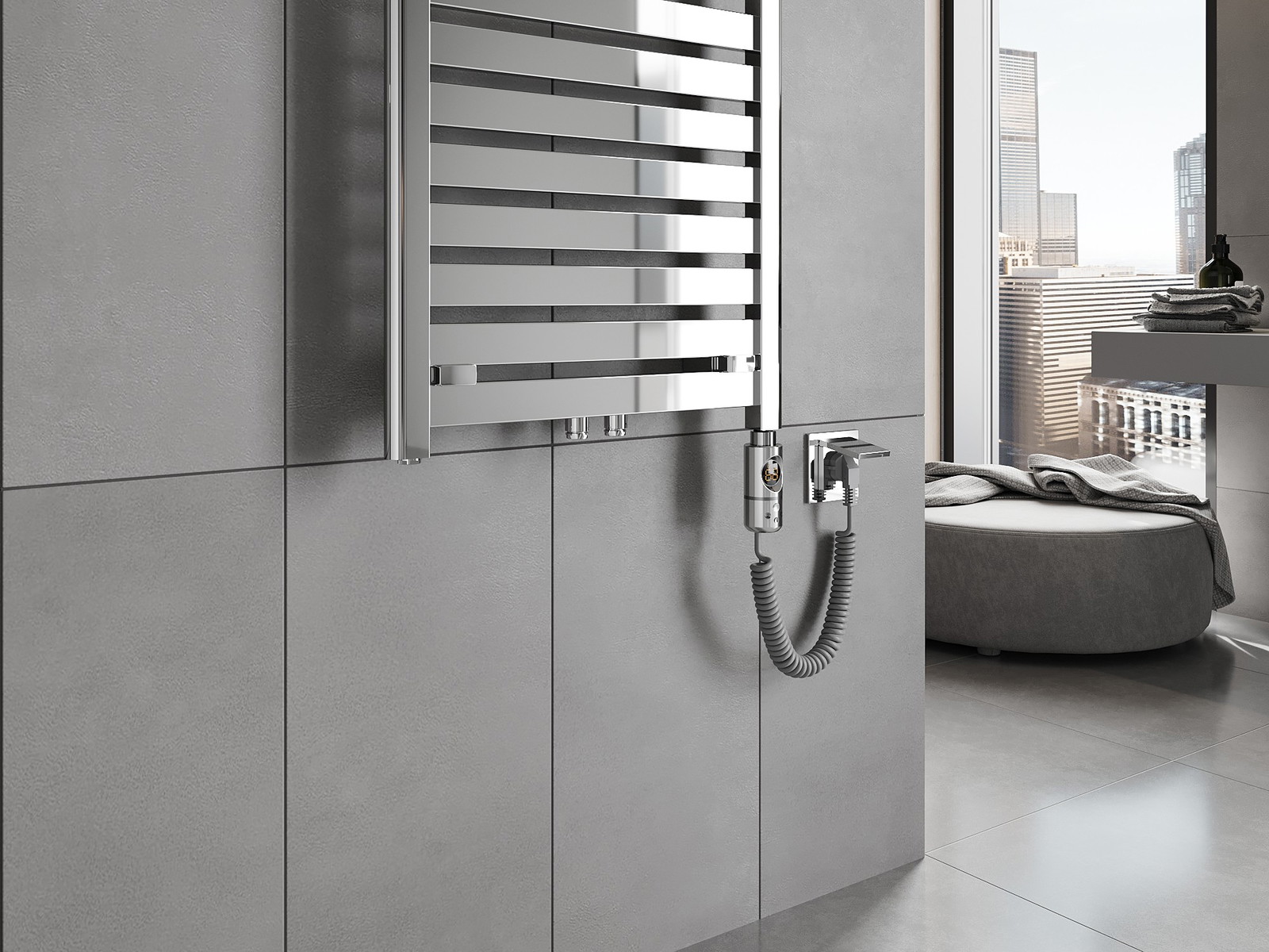 Mexen Uran ir mūsdienīgs elektriskais radiators, kas ideāli piemērots jebkuram interjeram. Ar augstumu 800 mm un platumu 600 mm tas piedāvā 300 W jaudas, nodrošinot efektīvu apkuri. Stilīgais hromētais izskats un tērauda konstrukcija garantē izturību. Iekārta aprīkota ar 11 sildītājstieņiem, efektīvu termostatu un IP44 aizsardzību. Ar LED displeju var viegli regulēt temperatūru no 40°C līdz 65°C. Papildu funkcijas, piemēram, žāvēšanas un bērna bloķēšana, palielina lietošanas komfortu.