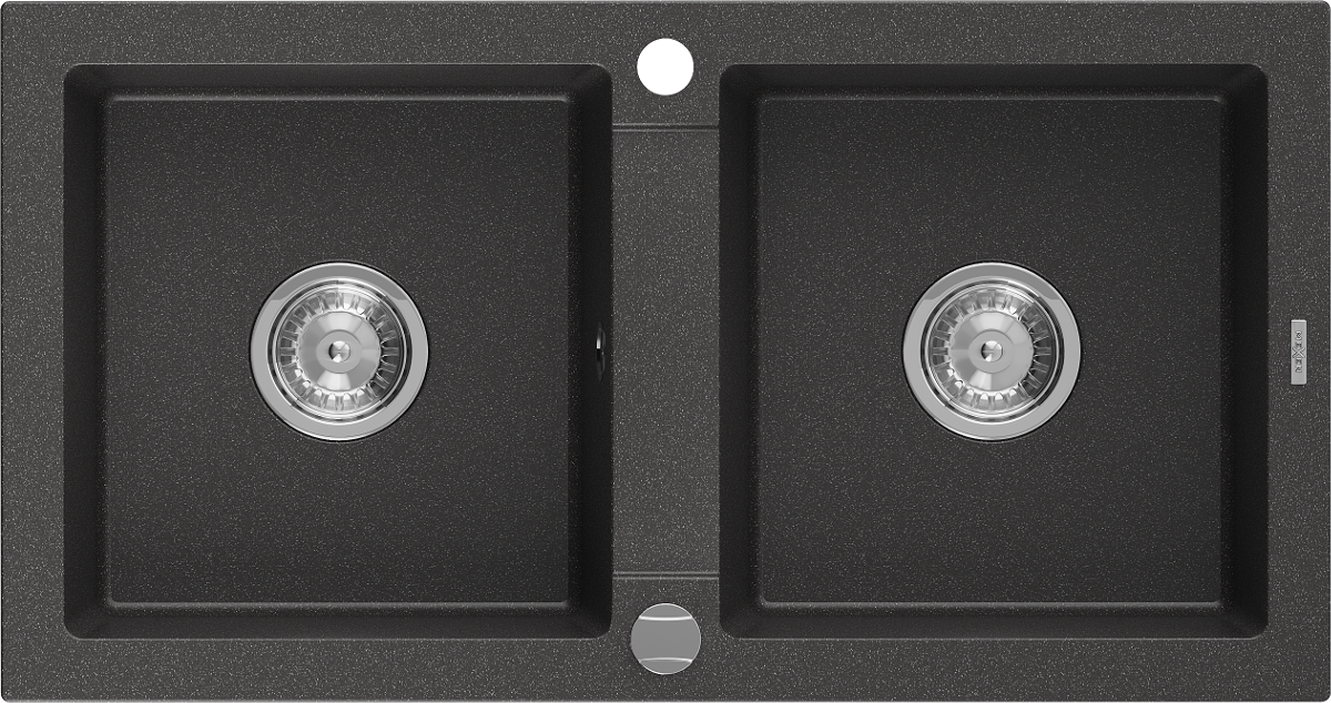 Mexen Mario granitais izlietne ar 2 nodalījumiem 820 x 436 mm, melna ar šļakatām, sifons hroms - 6504822000-76