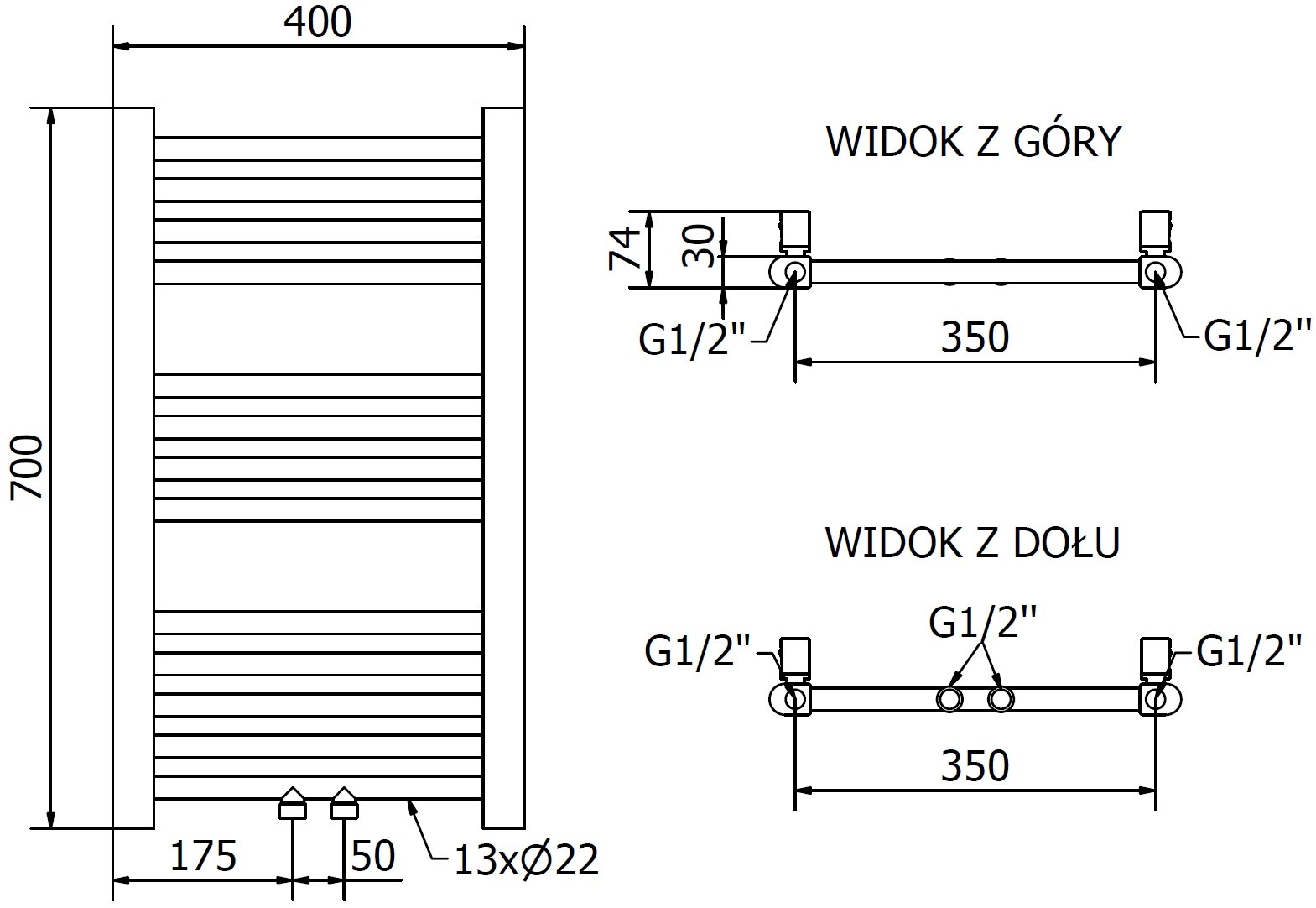 Kopējais sildītāja garums: 426 mm