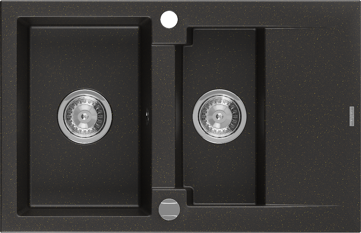 Mexen Gaspar granitā izlietne ar 1,5 nodalījumu un noteku 737 x 475 mm, melna/zeltaina metāliks, hromēts sifons - 6507731505-75