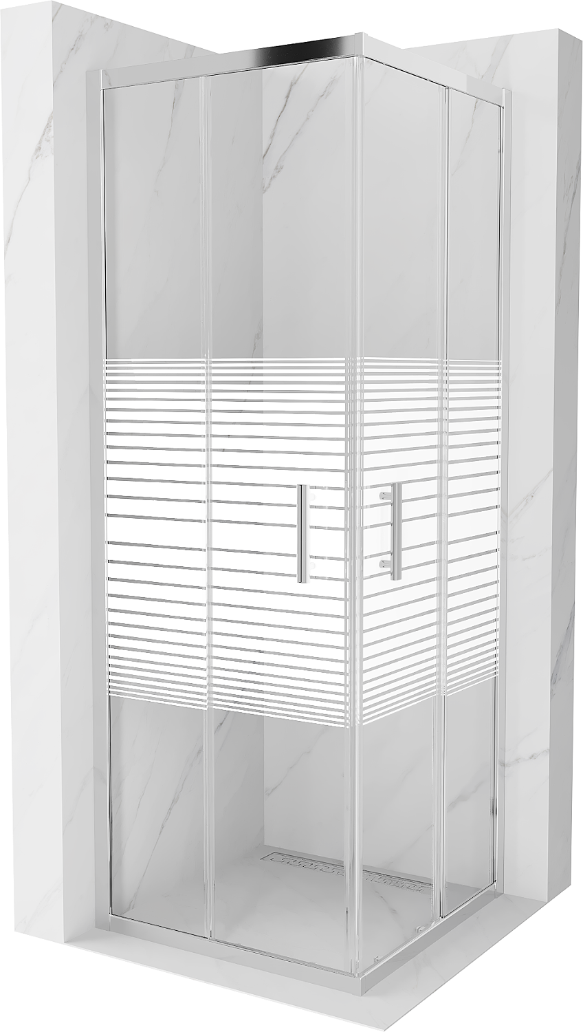 Mexen Rio kvadrāta dušas kabīne 70 x 70 cm, baltas joslas, hroms - 860-070-070-01-20
