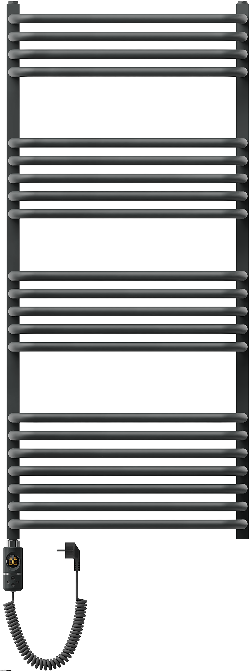 Komforta opcija ir funkcionalitāte, kas ļauj iestatīt apkures temperatūru izvēlētajā stundas skalā, kas var būt īpaši noderīgi situācijās, kad nepieciešams žāvēt priekšmetus, piemēram, dvieļus vai telpas.