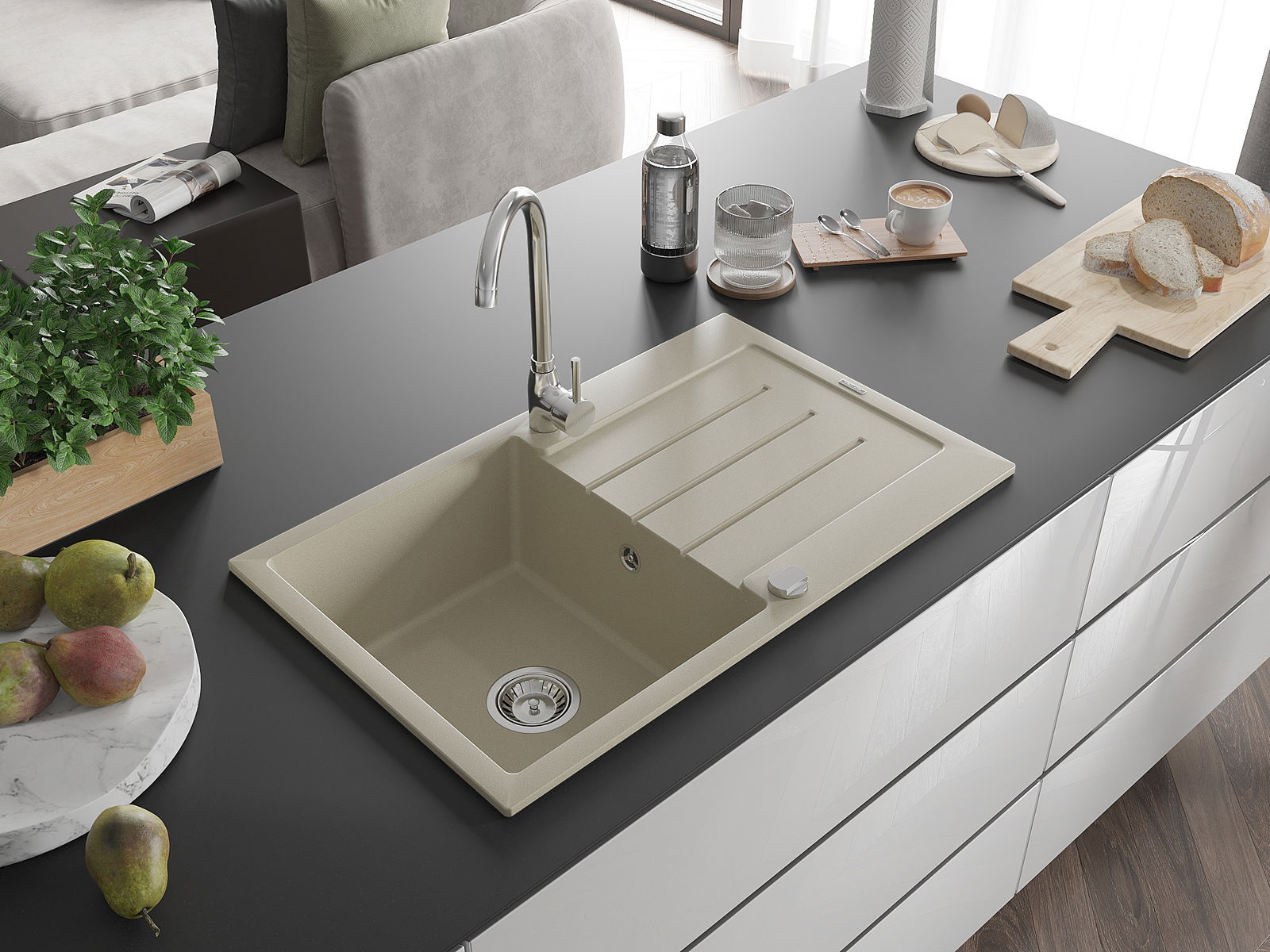 Izlietnes virsma ir izturīga pret traipiem un krāsas izmaiņām, tāpēc to ir viegli uzturēt tīru un tā saglabā savu krāsu ilgu lietošanas laiku. Estētiski un praktiski papildina jebkuru virtuvi.