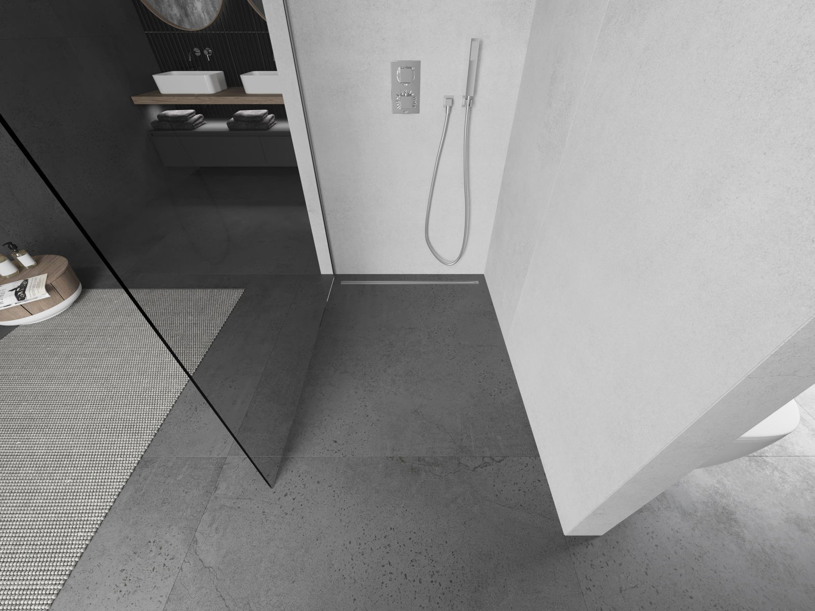 Produktu, atkarībā no vajadzībām, var uzstādīt gan uz dušas paliktņa, gan tieši uz grīdas. Universālā montāžas metode ļauj pielāgot produktu dažāda veida vannas istabām un telpas konfigurācijām.