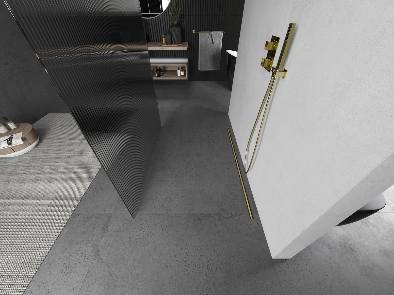 Mexen Kioto brīvi stāvoša dušas siena 100 x 200 cm, svītras 8 mm, zelta matēts - 800-100-002-55-09