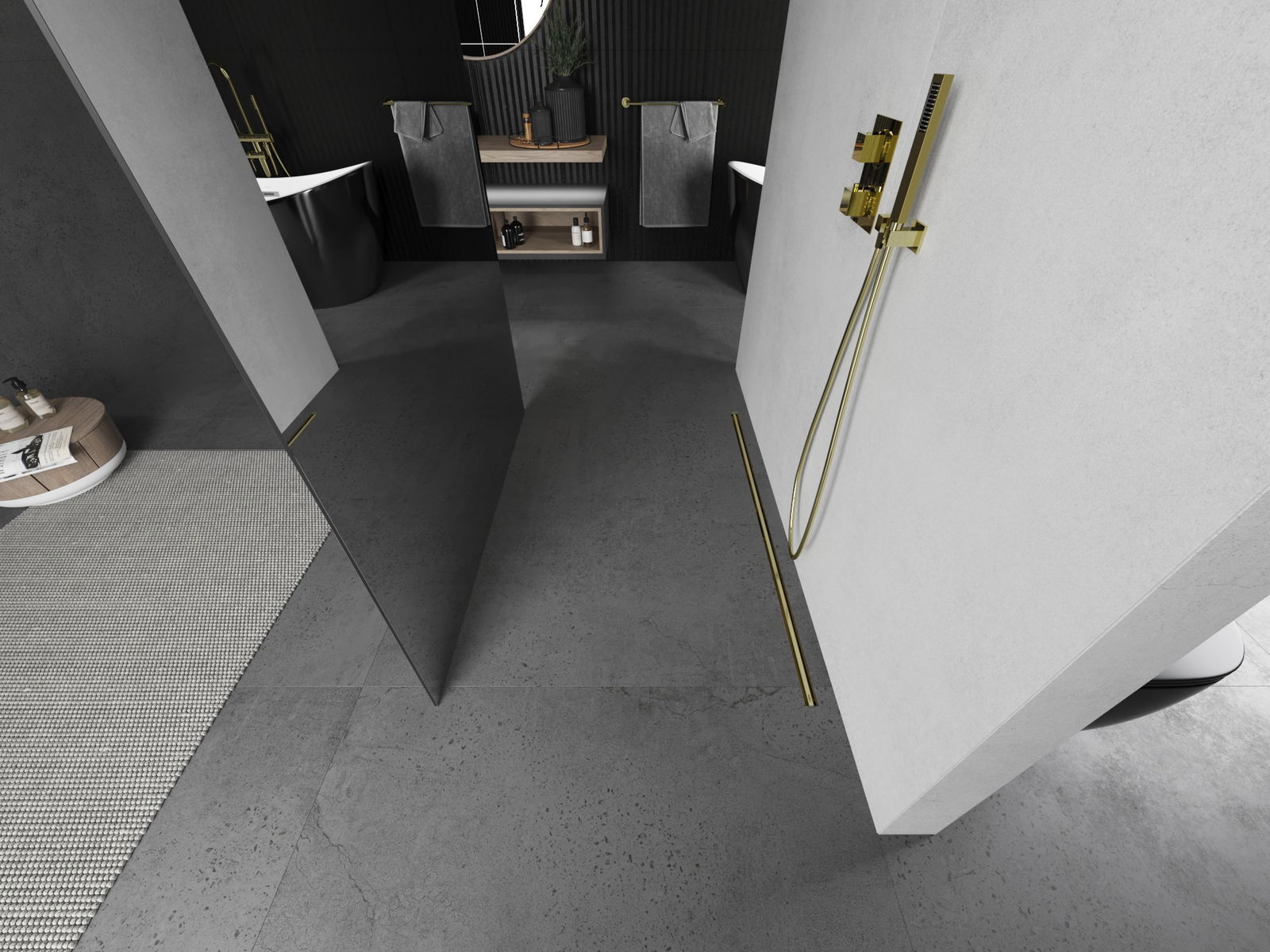 Mexen Kioto brīvi stāvoša dušas siena 100 x 200 cm, spogulis 8 mm, zelta matēts - 800-100-002-55-50