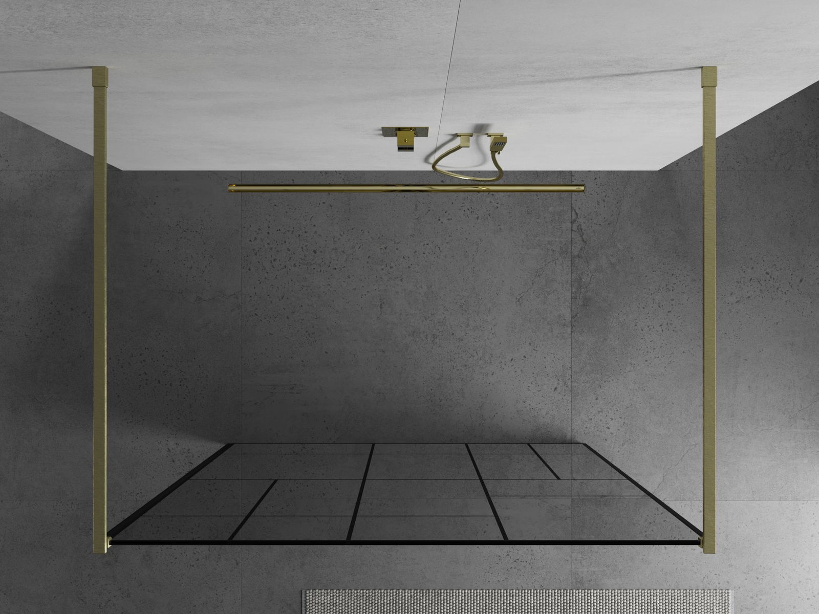 Mexen Kioto Brīvi stāvoša dušas siena 120 x 200 cm, melns raksts 8 mm, zelta matēts - 800-120-002-55-78