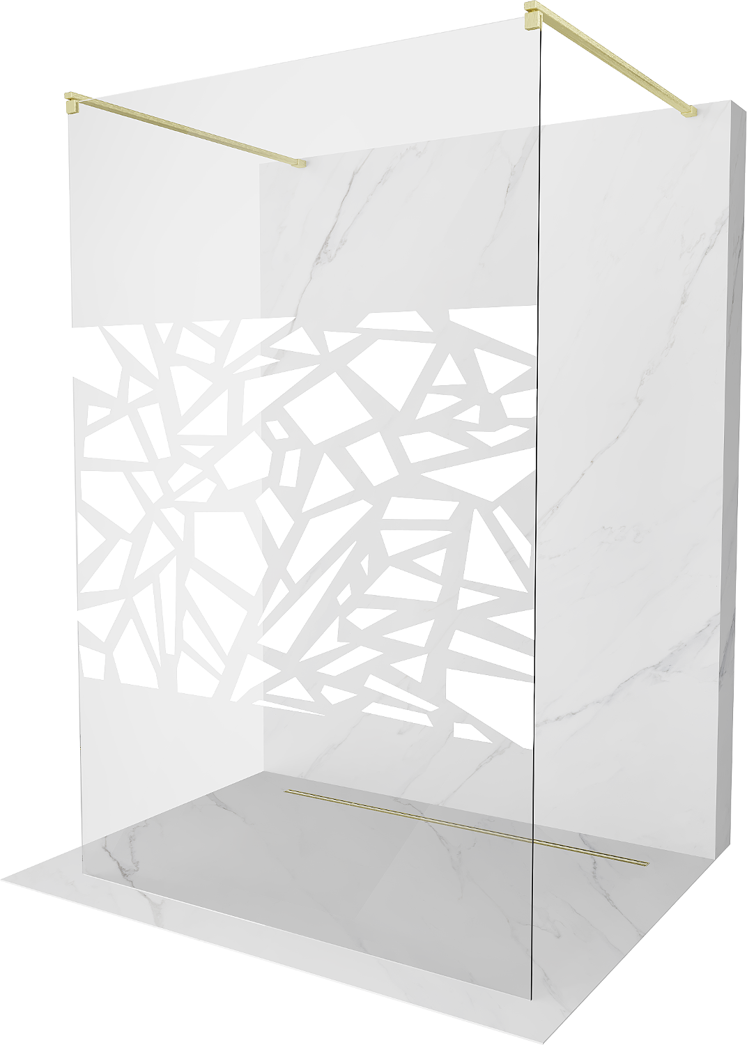 Mexen Kioto brīvi stāvoša dušas siena 110 x 200 cm, balts raksts 8 mm, zeltīts matēts - 800-110-002-55-85