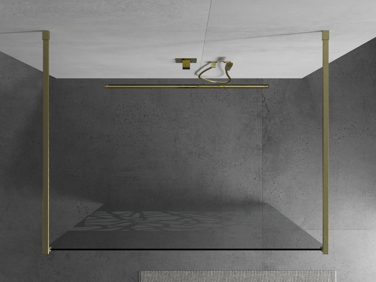 Mexen Kioto Brīvi stāvoša dušas siena 140 x 200 cm, balts raksts 8 mm, zelta matēts - 800-140-002-55-85