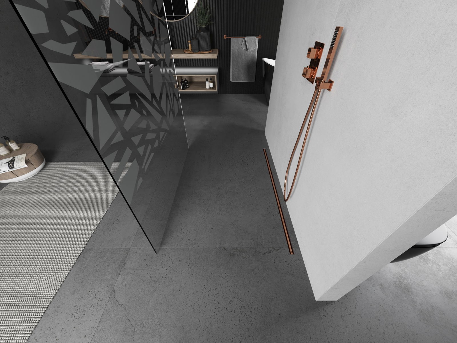 Mexen Kioto brīvi stāvoša dušas siena 110 x 200 cm, balts raksts 8 mm, matēts varš - 800-110-002-65-85