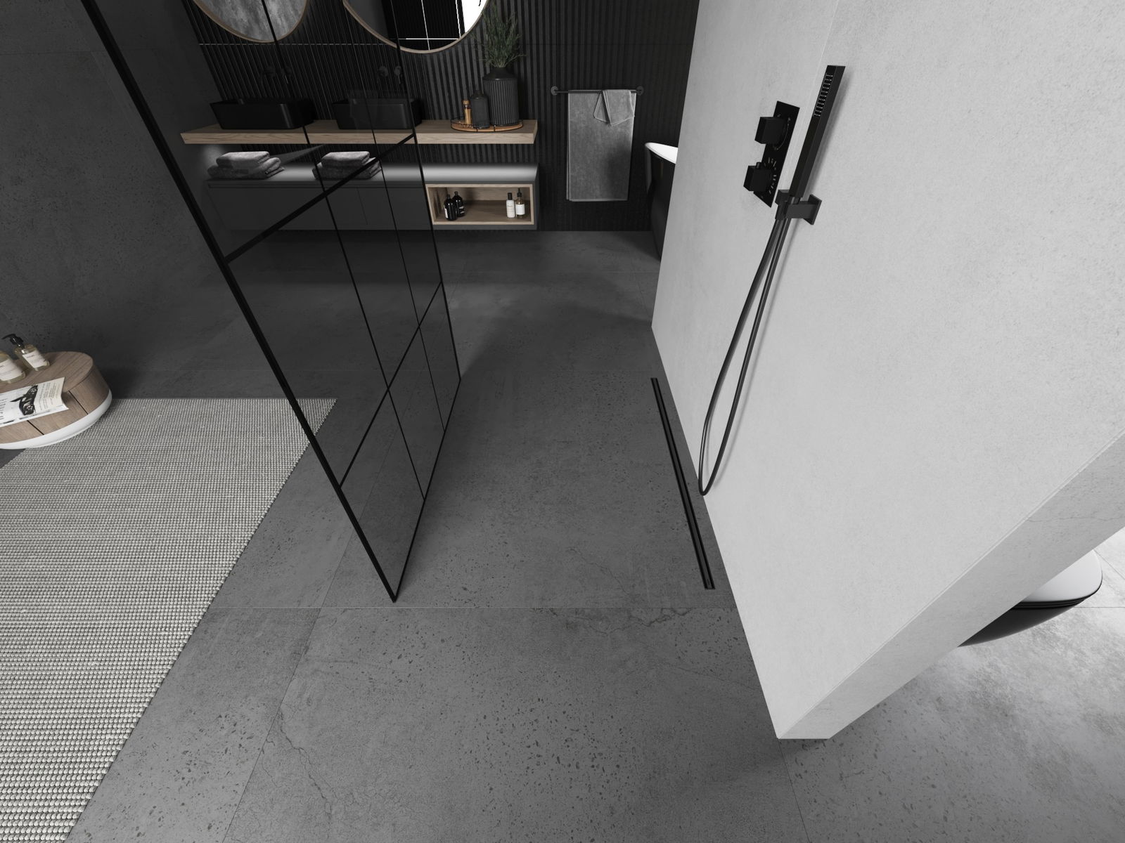 Produktu, atkarībā no vajadzībām, var uzstādīt gan uz dušas paliktņa, gan tieši uz grīdas. Universālā montāžas metode ļauj pielāgot produktu dažāda veida vannas istabām un telpas konfigurācijām.