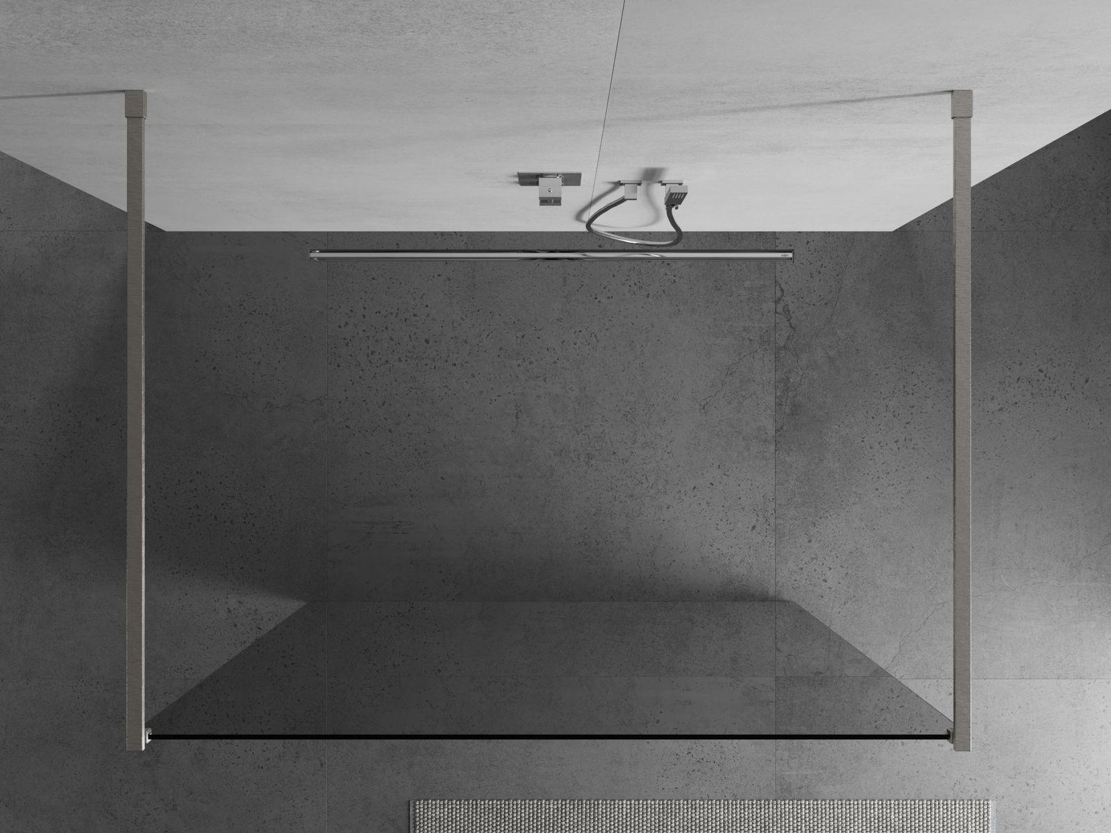 Mexen Kioto Brīvi stāvoša dušas siena 110 x 200 cm, caurspīdīga 8 mm, matēts niķelis - 800-110-002-97-00
