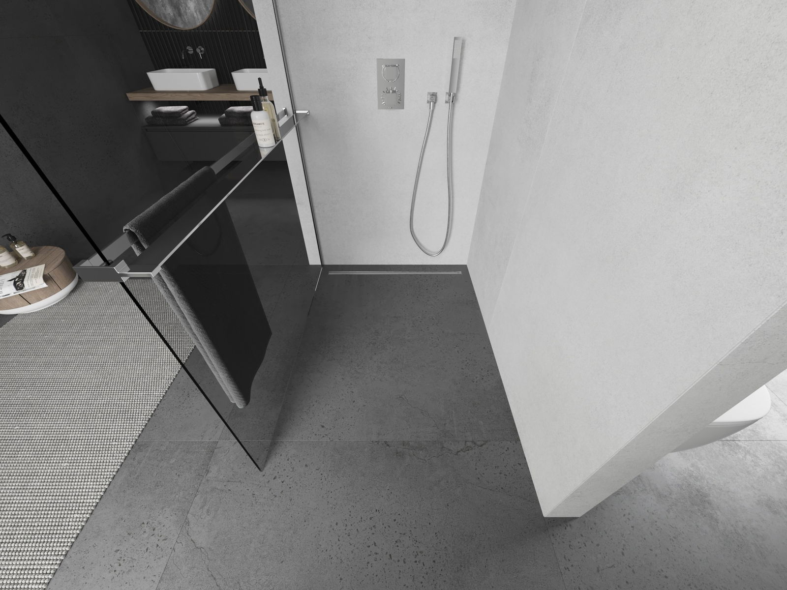 Produktu, atkarībā no vajadzībām, var uzstādīt gan uz dušas paliktņa, gan tieši uz grīdas. Universālā montāžas metode ļauj pielāgot produktu dažāda veida vannas istabām un telpas konfigurācijām.