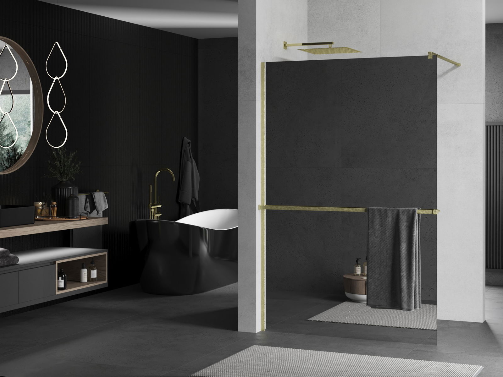 Mexen Kioto+ dušas siena ar plauktu Walk-in 140 x 200 cm, spogulis, zelta matēta - 800-140-121-55-50