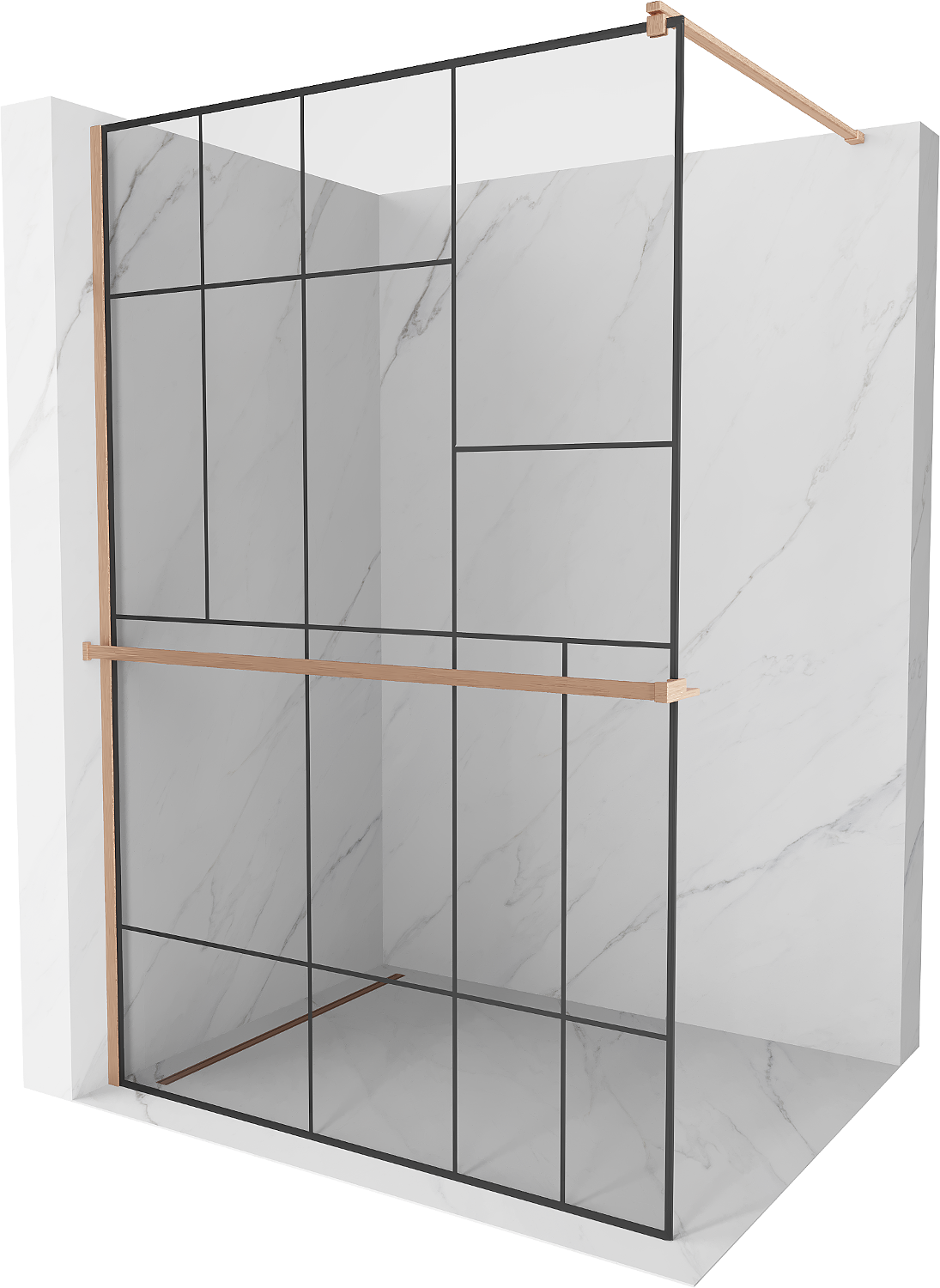 Mexen Kioto+ dušas siena ar plauktu Walk-in 90 x 200 cm, melns raksts, birstīta varš - 800-090-121-65-78