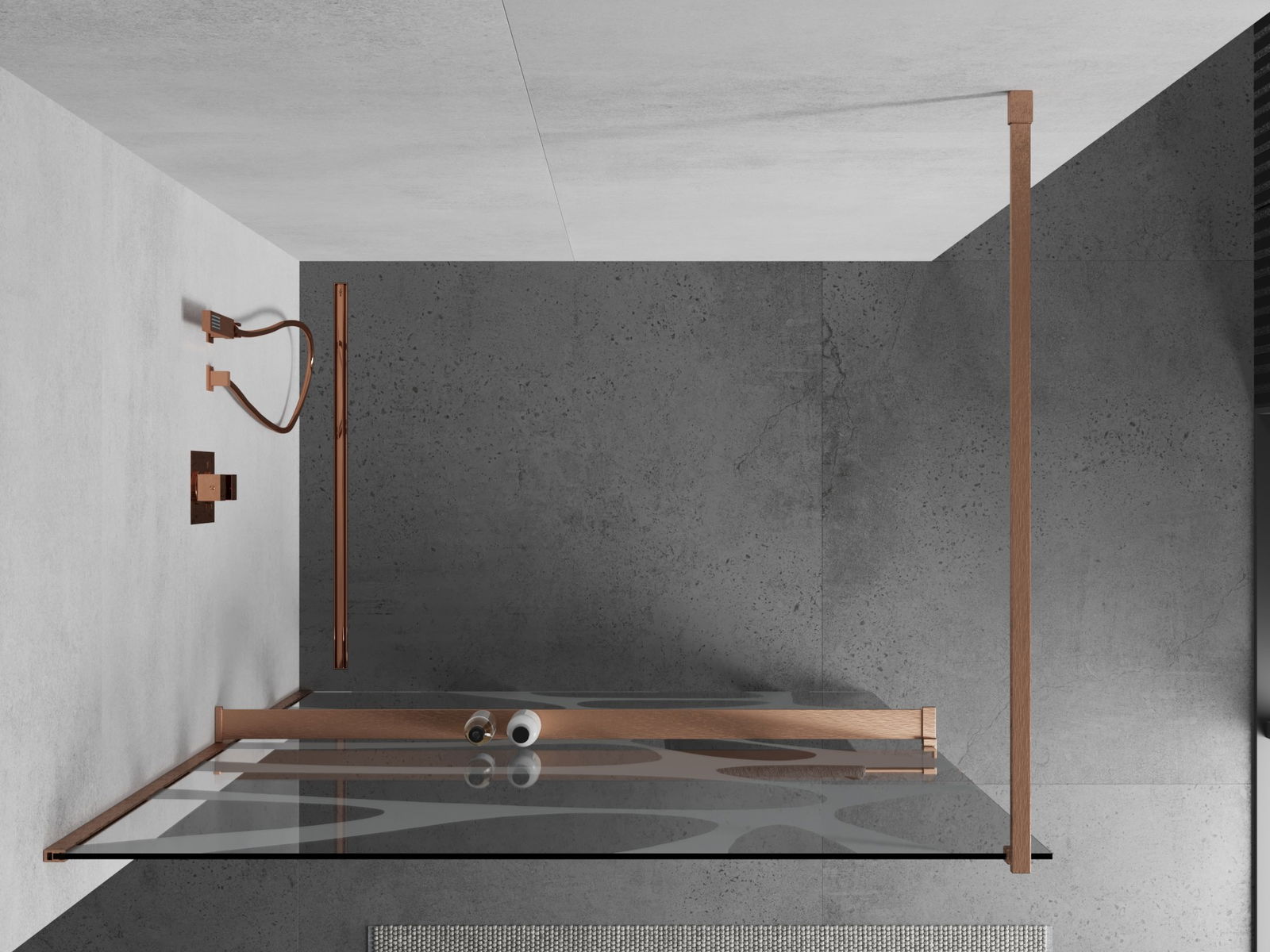 Mexen Kioto+ dušas siena ar plauktu Walk-in 90 x 200 cm, balta vilnis, matēts varš - 800-090-121-65-97