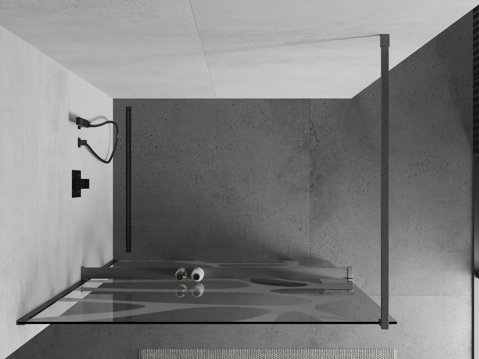 Mexen Kioto+ duša sienas ar plauktu Walk-in 100 x 200 cm, balta vilnis, gun pelēks matēts - 800-100-121-66-97