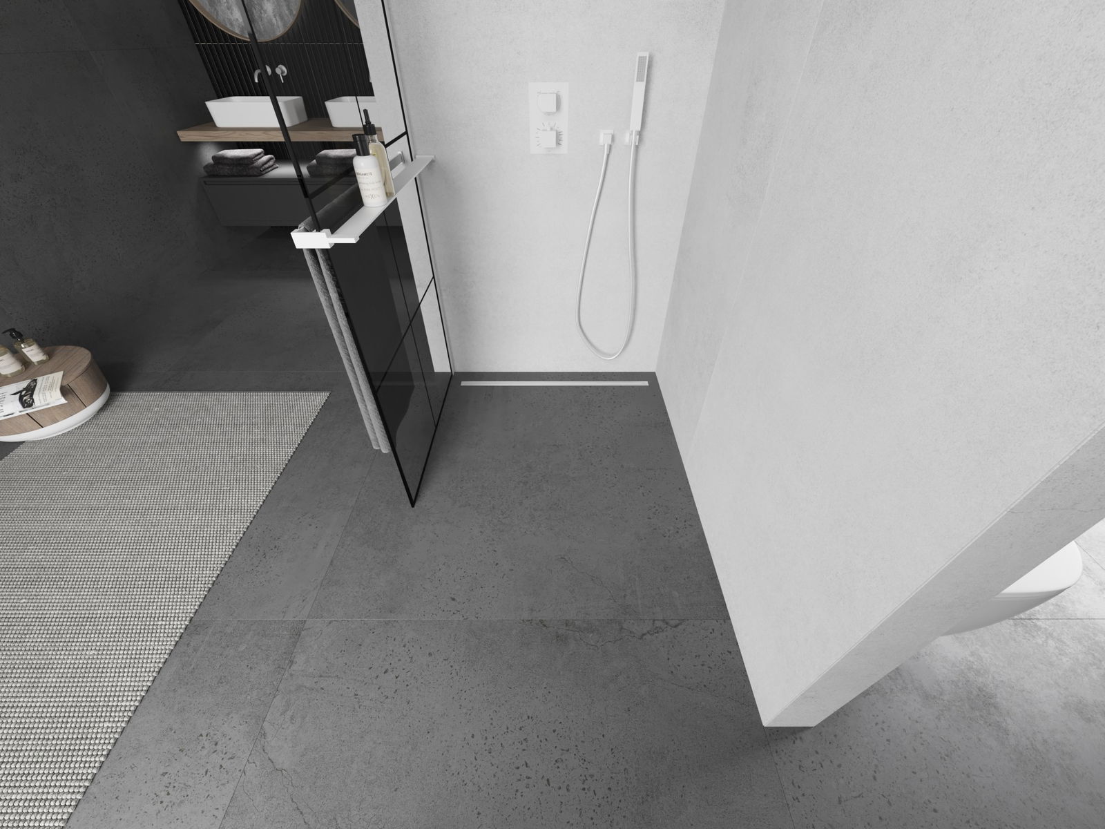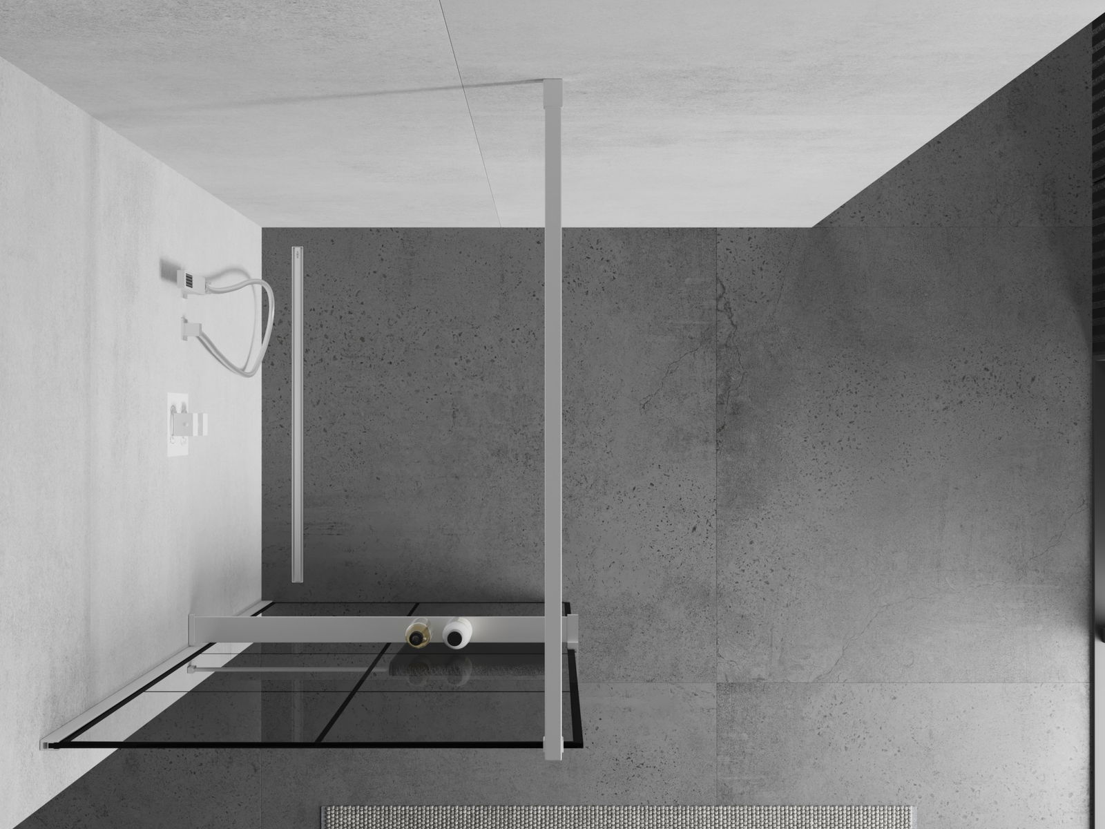 Mexen Kioto+ dušas siena ar plauktu Walk-in 70 x 200 cm, melna režģis, balta - 800-070-121-20-77