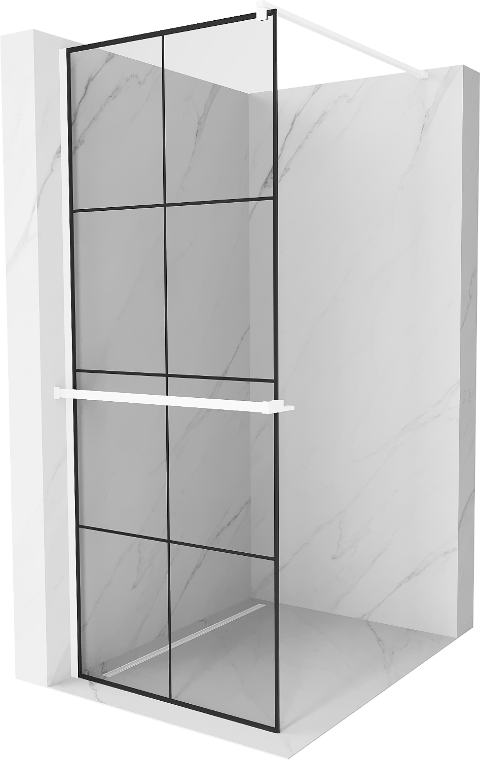 Mexen Kioto+ dušas siena ar plauktu Walk-in 80 x 200 cm, melna režģis, balta - 800-080-121-20-77