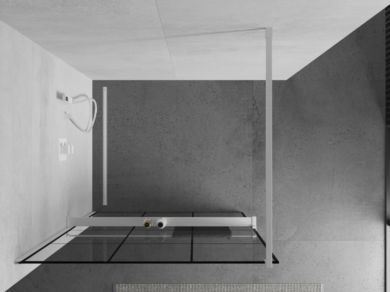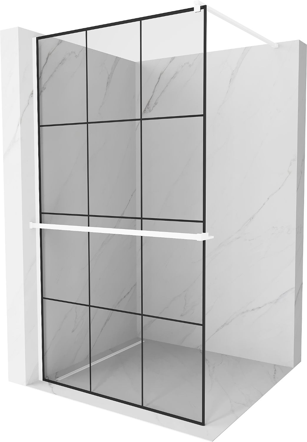 Mexen Kioto+ duša sienas ar plauktu Walk-in 120 x 200 cm, melns režģis, balts - 800-120-121-20-77
