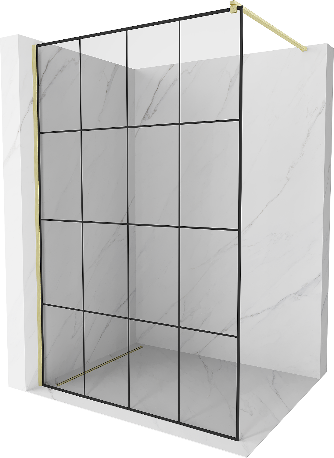 Mexen Kioto dušas siena Walk-in 160 x 200 cm, melns režģis 8 mm, zelta matēts - 800-160-101-55-77
