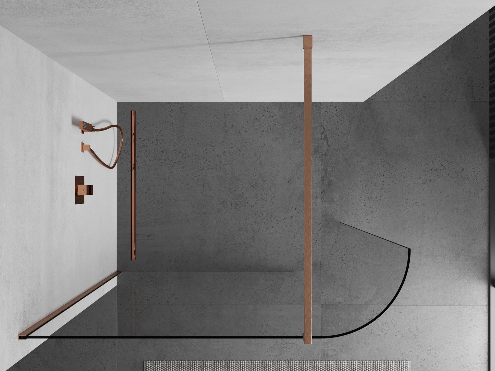 Mexen Kioto-R apaļš dušas siena Walk-in 140 x 200 cm, caurspīdīgs 8 mm, matēta varš - 800-140-101-65-06