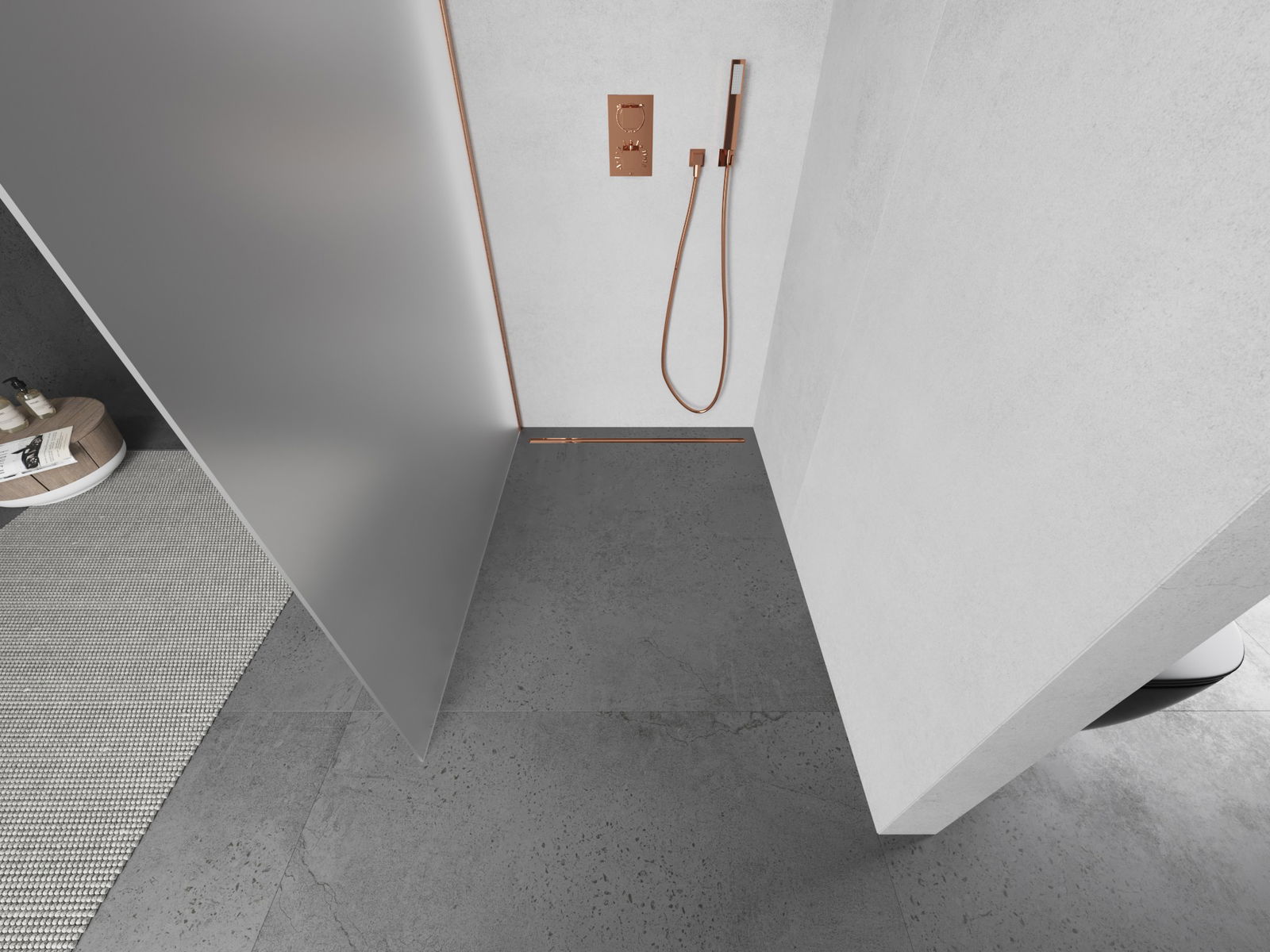 Mexen Kioto dušas siena Walk-in 120 x 200 cm, sals 8 mm, matēts varš - 800-120-101-65-30