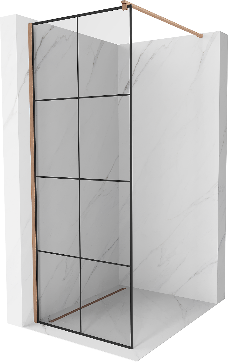 Mexen Kioto dušas siena Walk-in 70 x 200 cm, melns režģis 8 mm, matēts varš - 800-070-101-65-77