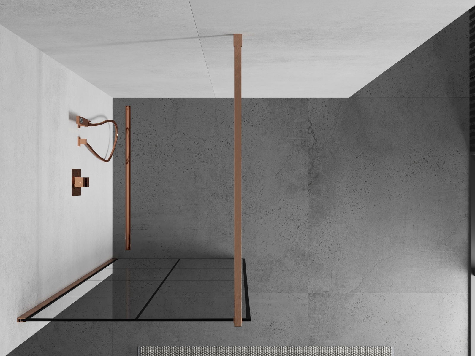 Mexen Kioto Duša siena Walk-in 80 x 200 cm, melns režģis 8 mm, matēts varš - 800-080-101-65-77