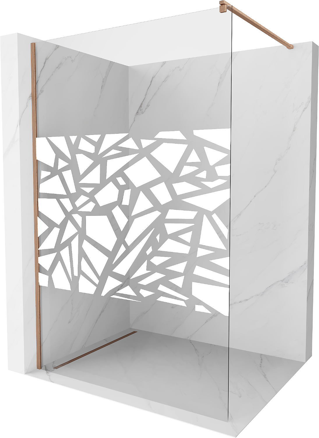 Mexen Kioto dušas siena Walk-in 130 x 200 cm, balts raksts 8 mm, pulēts varš - 800-130-101-65-85