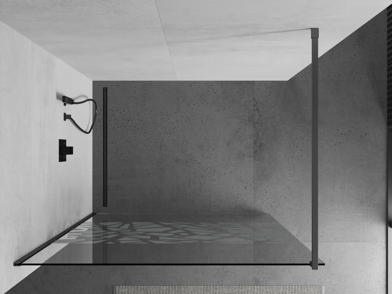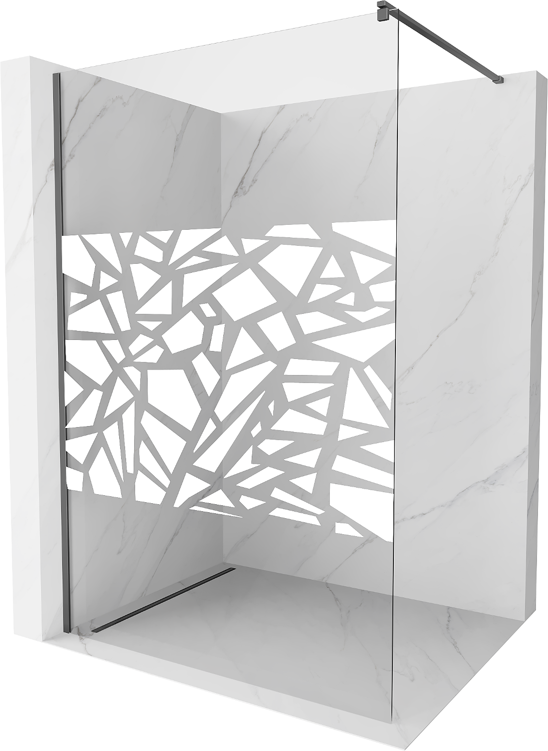 Mexen Kioto duša sienas paneļa Walk-in 70 x 200 cm, balts raksts 8 mm, šautenes metāls - 800-070-101-95-85