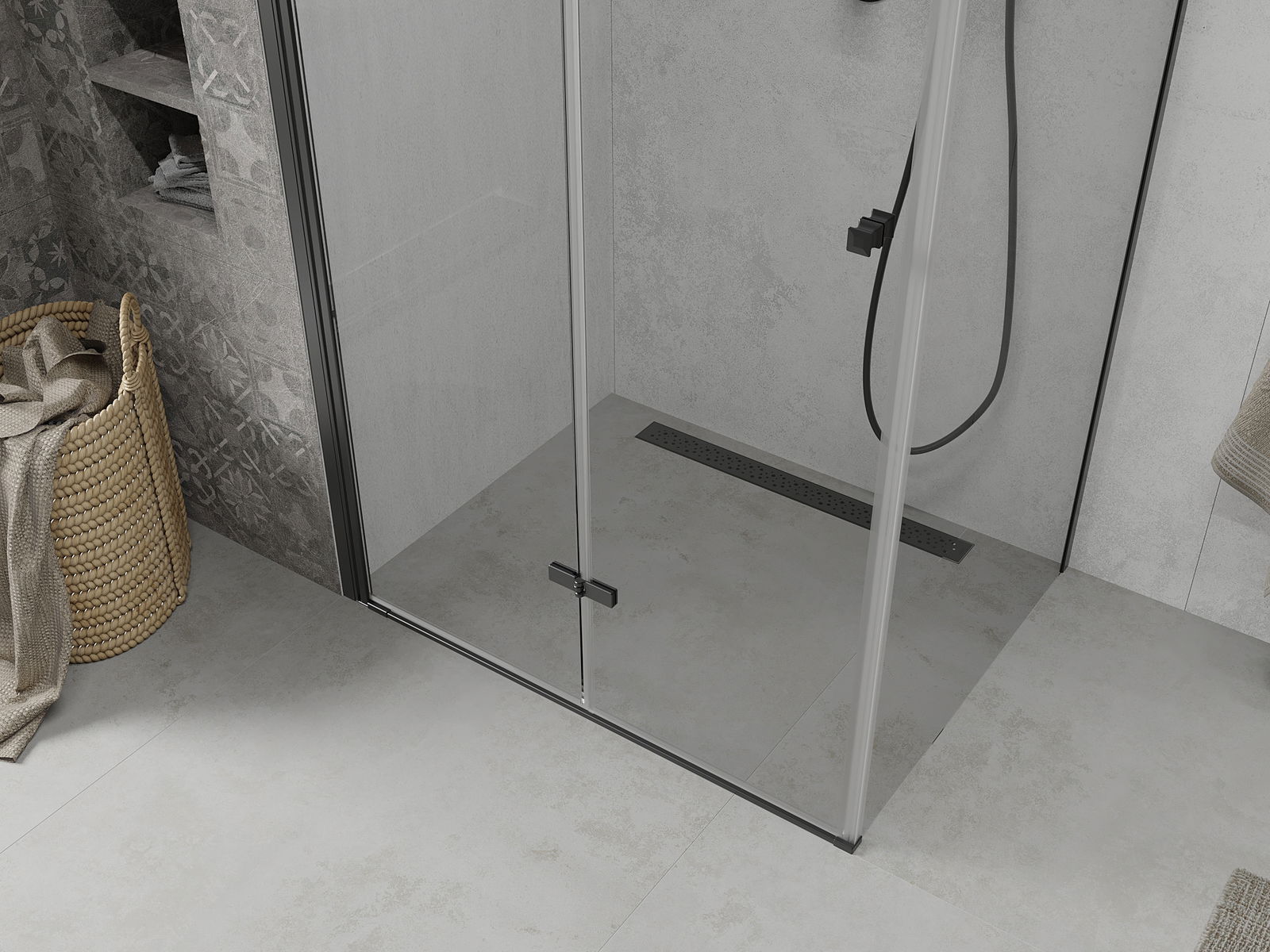 Iespēja salocīt durvis gan uz āru, gan uz iekšpusi, ļauj iegūt vairāk vietas, kad duša netiek izmantota. Tas ir ideāls risinājums mazākām vannas istabām, maksimāli izmantojot pieejamo telpu.