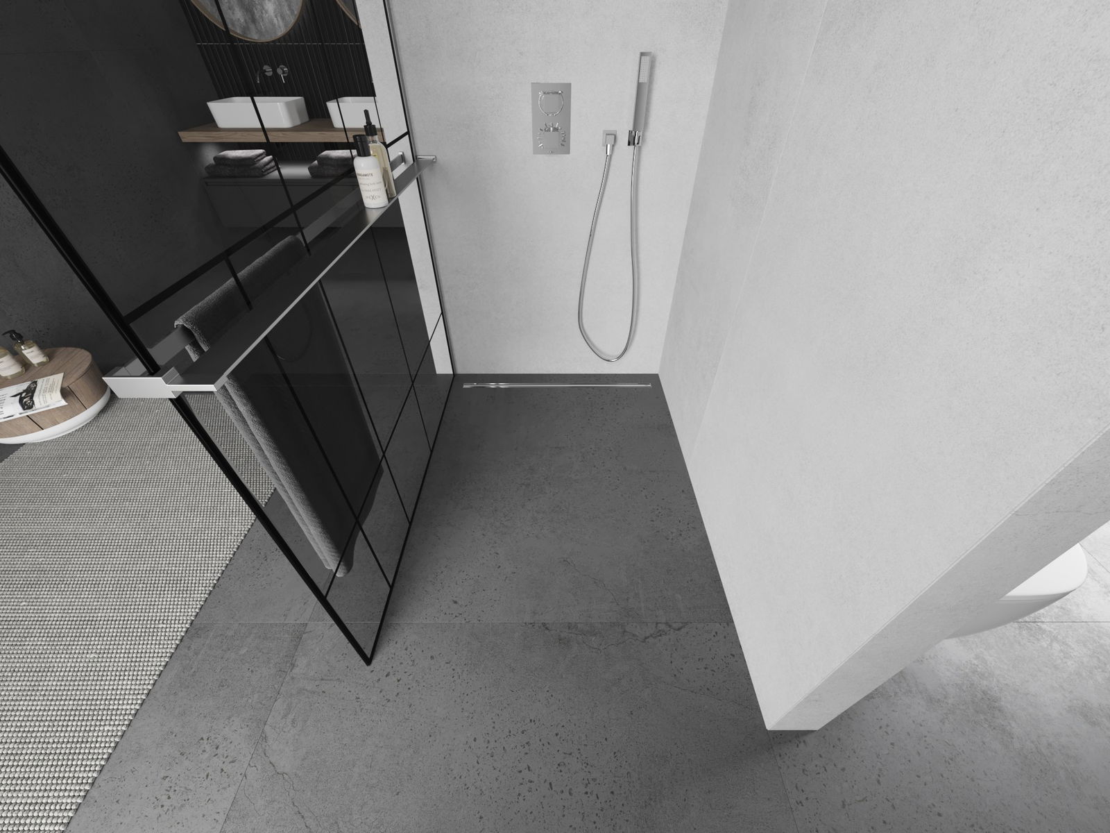 Produktu, atkarībā no vajadzībām, var uzstādīt gan uz dušas paliktņa, gan tieši uz grīdas. Universālā montāžas metode ļauj pielāgot produktu dažāda veida vannas istabām un telpas konfigurācijām.