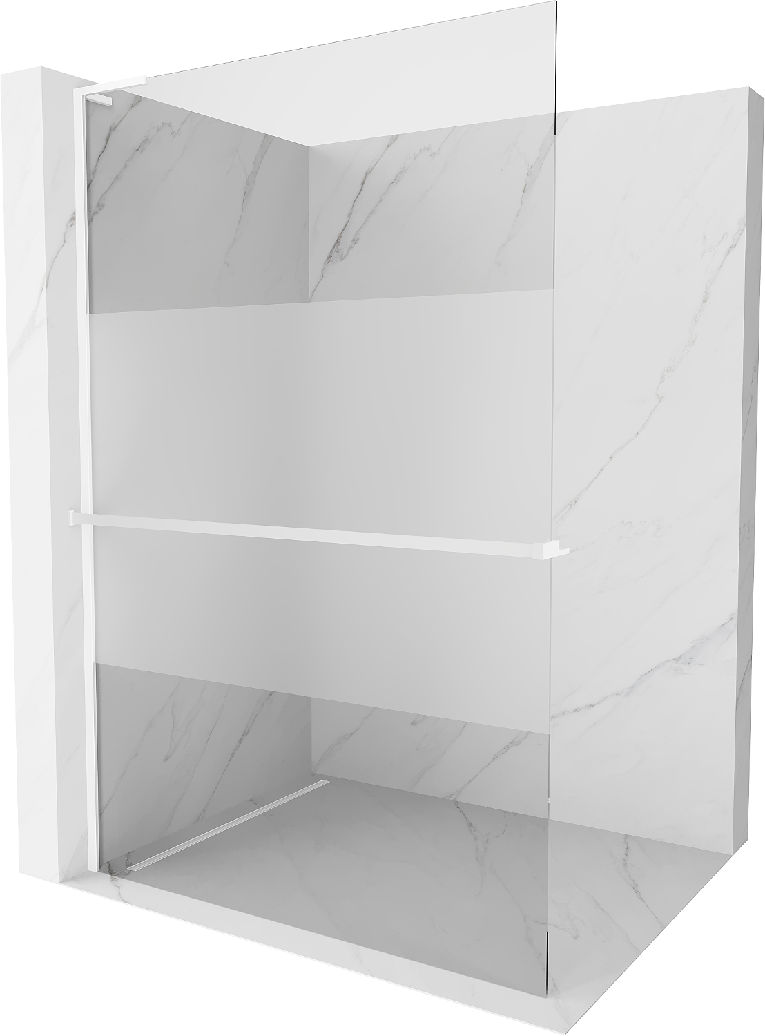 Mexen Kioto+ L dušas siena ar plauktu, 110 x 200 cm, caurspīdīga/matēta, balta - 800-110-123-20-35