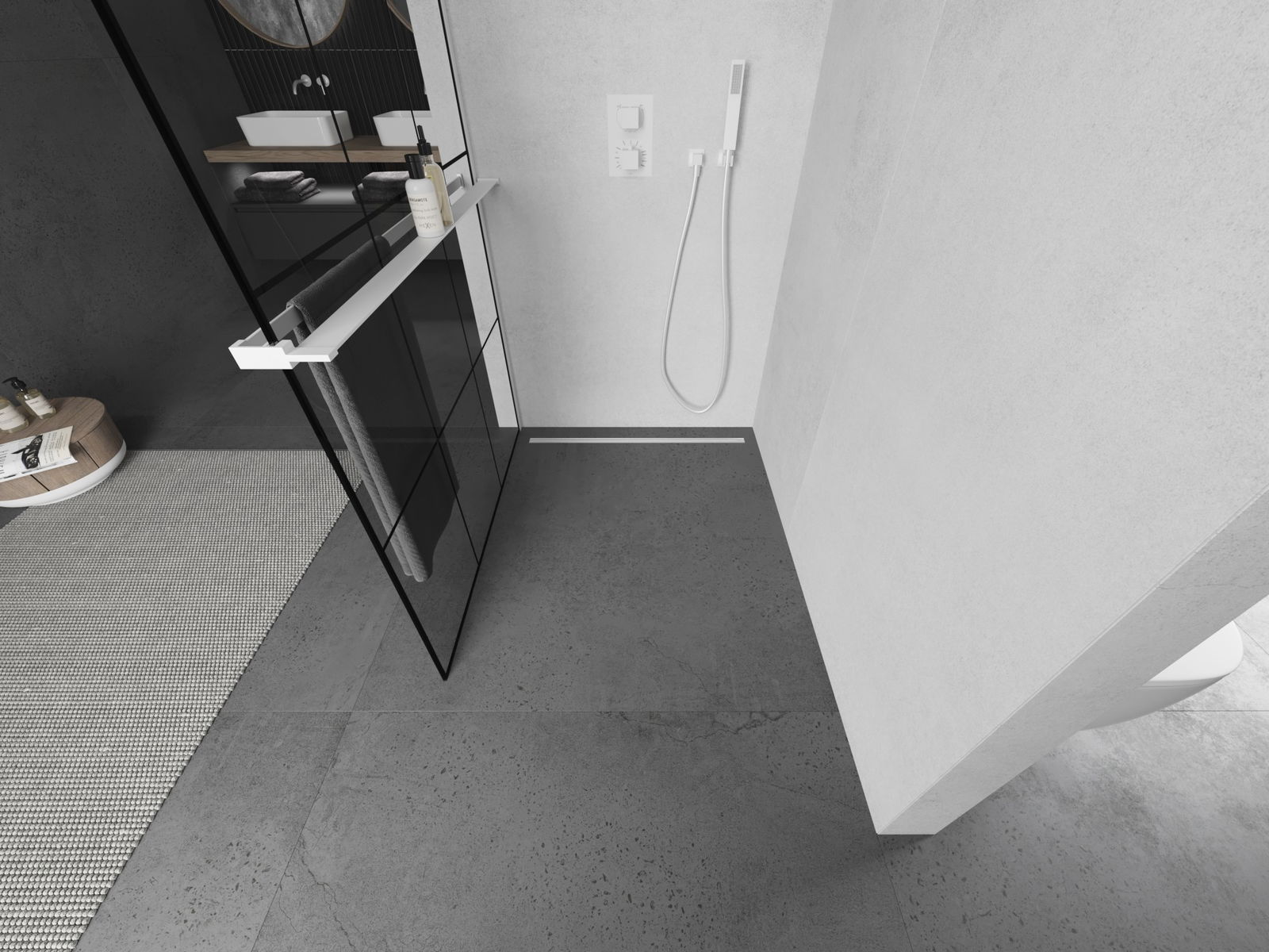 Mexen Kioto+ L dušas siena ar plauktu Walk-in 120 x 200 cm, melns režģis, balts - 800-120-123-20-77