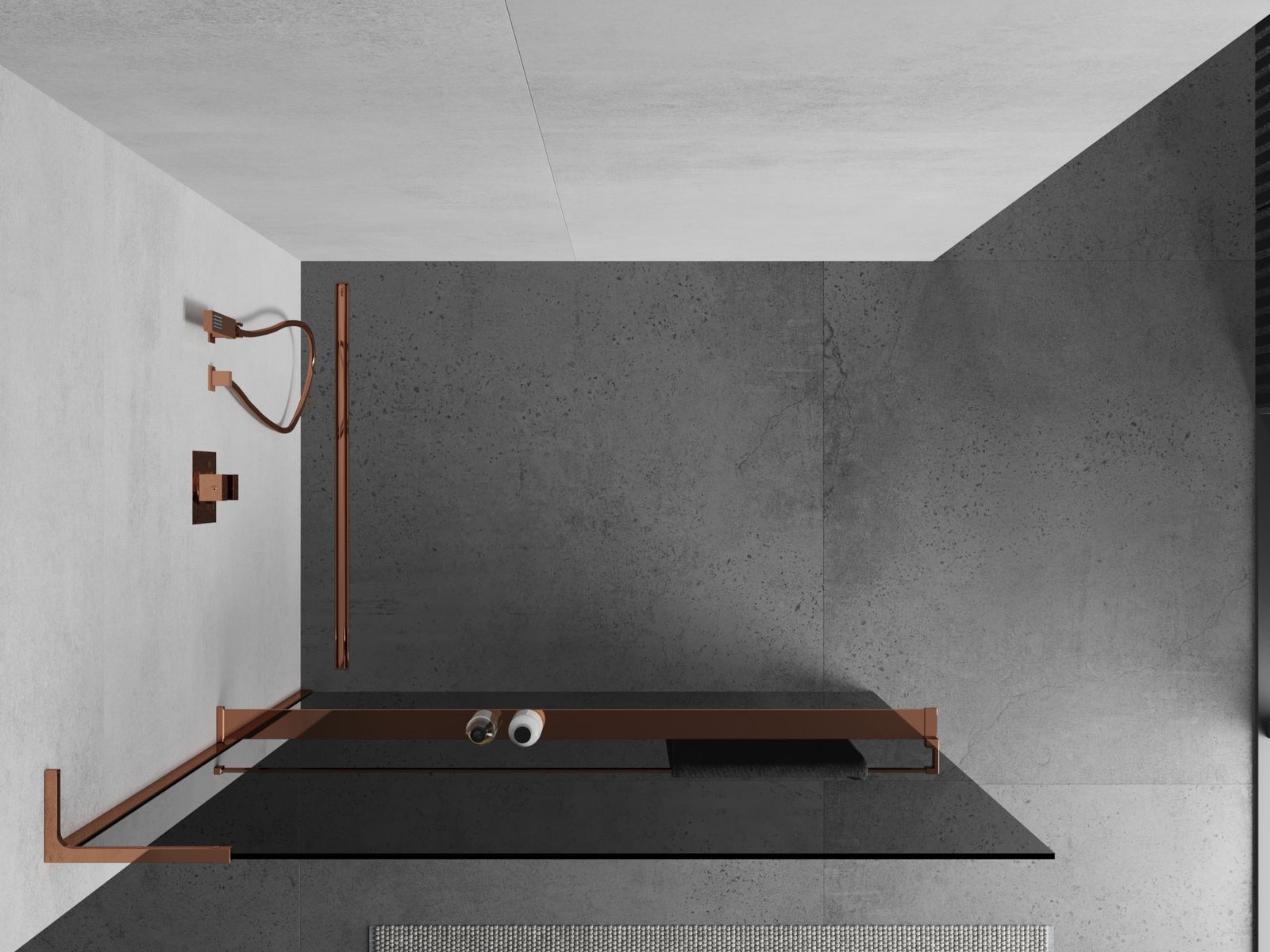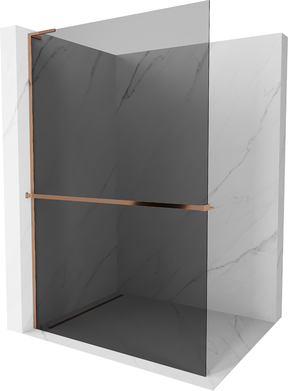 Mexen Kioto+ L dušas siena ar plauktu Walk-in 90 x 200 cm, grafīts, rozā zelts - 800-090-123-60-40